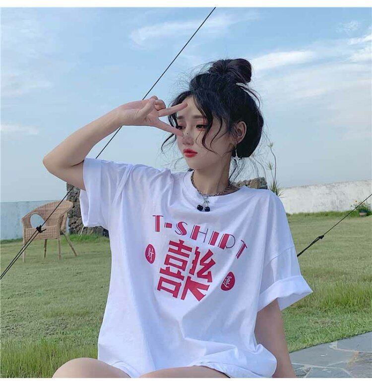 自然派スタイルプリントホワイトTシャツレディース夏服ルーズトップス 夏物 コーデ marchs671684674758