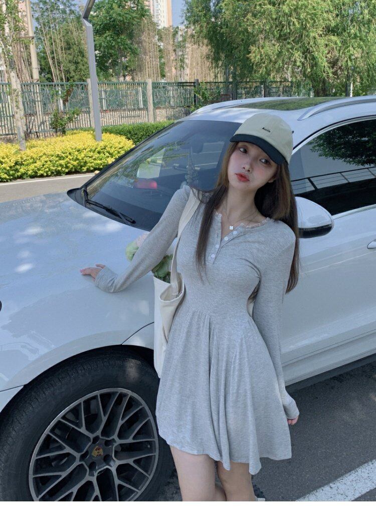 夏服ウェストカジュアル韓国ファッションレディースAラインワンピース ロング 夏物 スカート 長袖 ウエスト コーデ marchs6761688124074