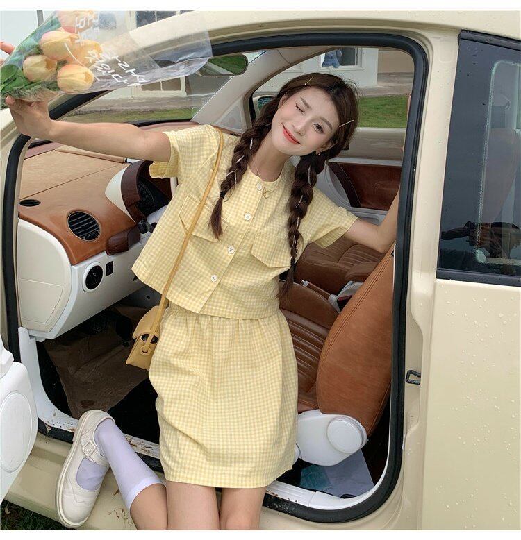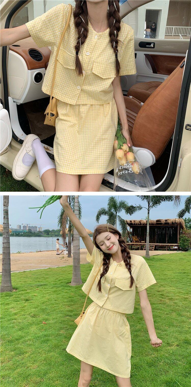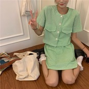 夏服格子柄シャツ スカート 夏物 コーデ marchs6749238238508