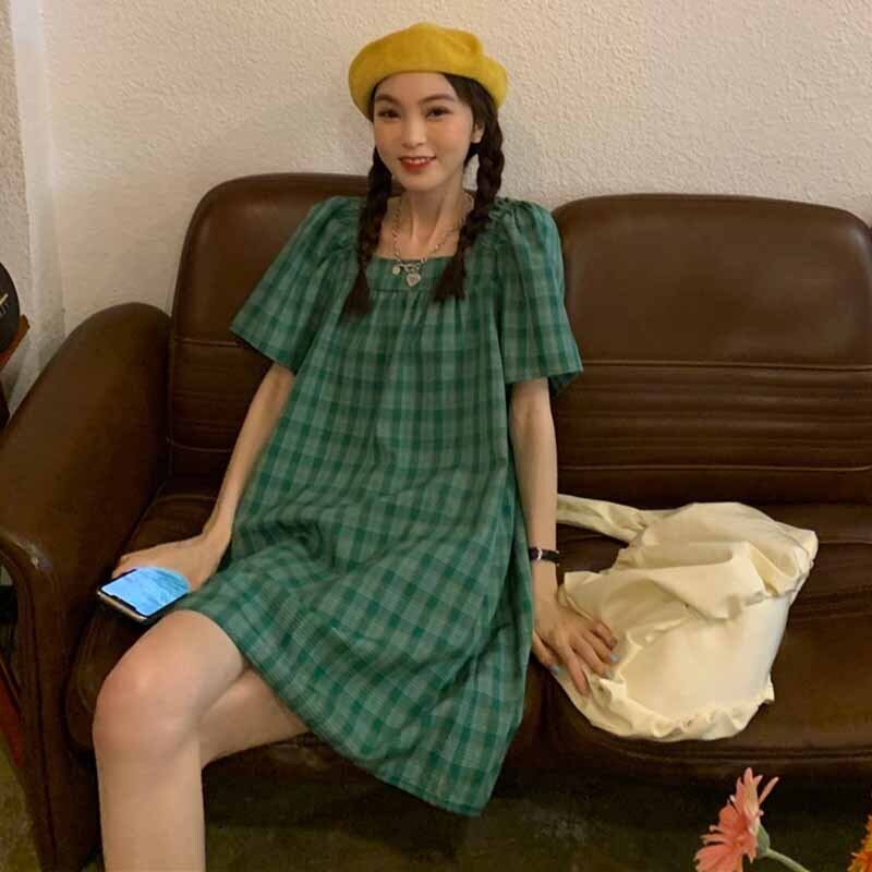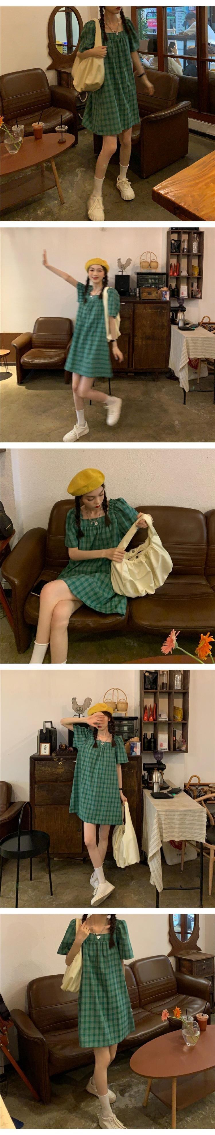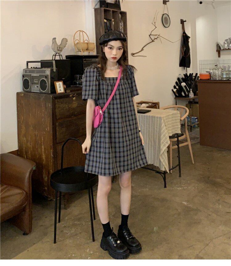 韓国ファッションAラインワンピースレディース夏服スタンダードスカート レトロ 夏物 スクウェア コーデ marchs677740664729