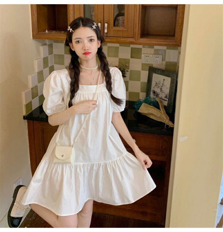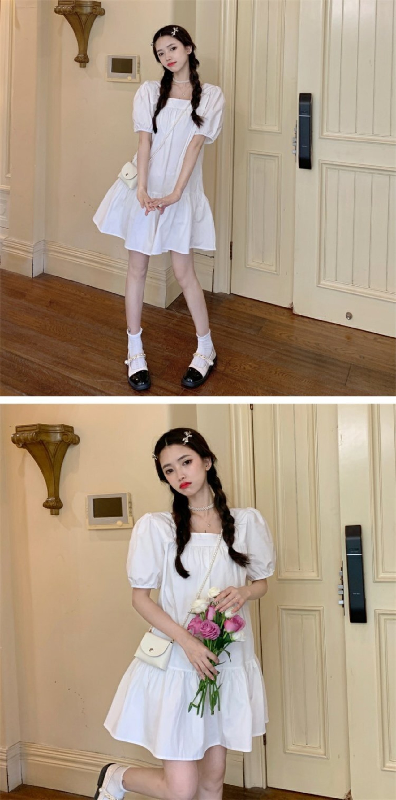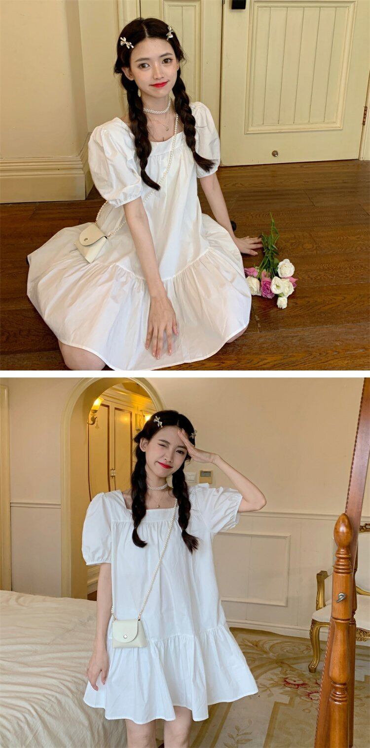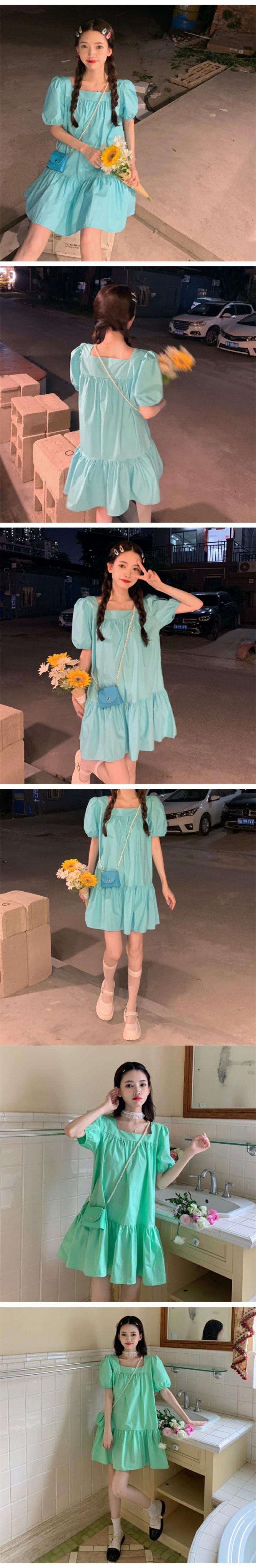 夏服パフスリーブスリーブワンピースレディース薄手 夏物 スクウェア コーデ marchs6742732667127