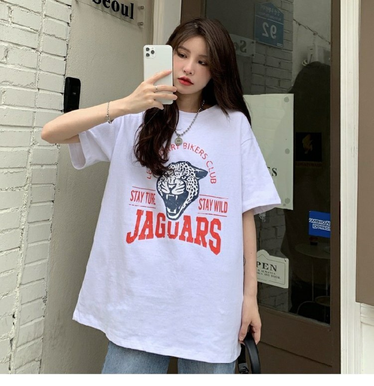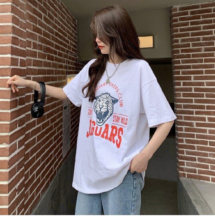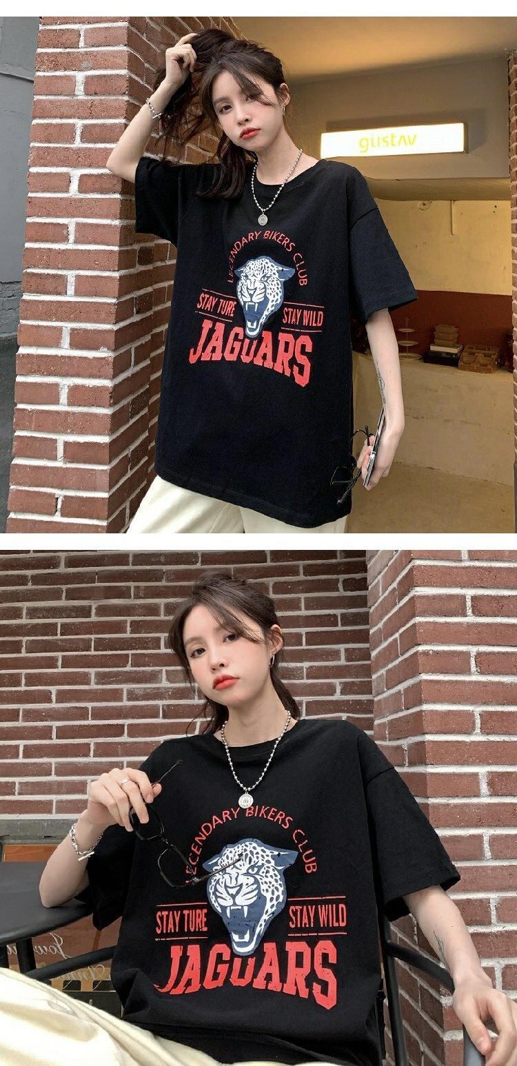 夏服韓国ファッションルーズレオパードプリント柄ラウンドネックホワイト半袖スリーブTシャツレディーストップス ショート ハーフスリーブ 夏物 Oネック スタイル コーデ marchs676618132362