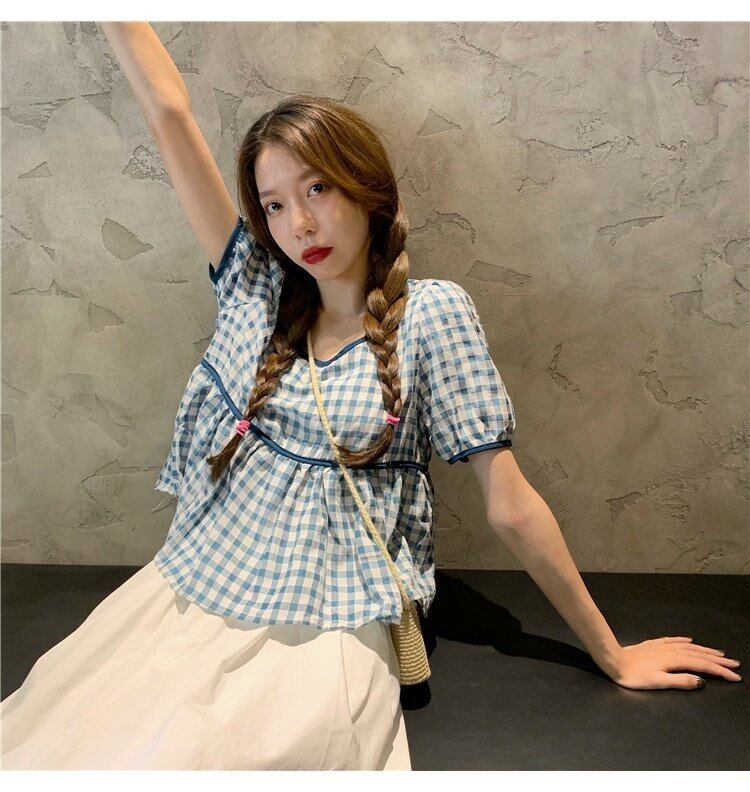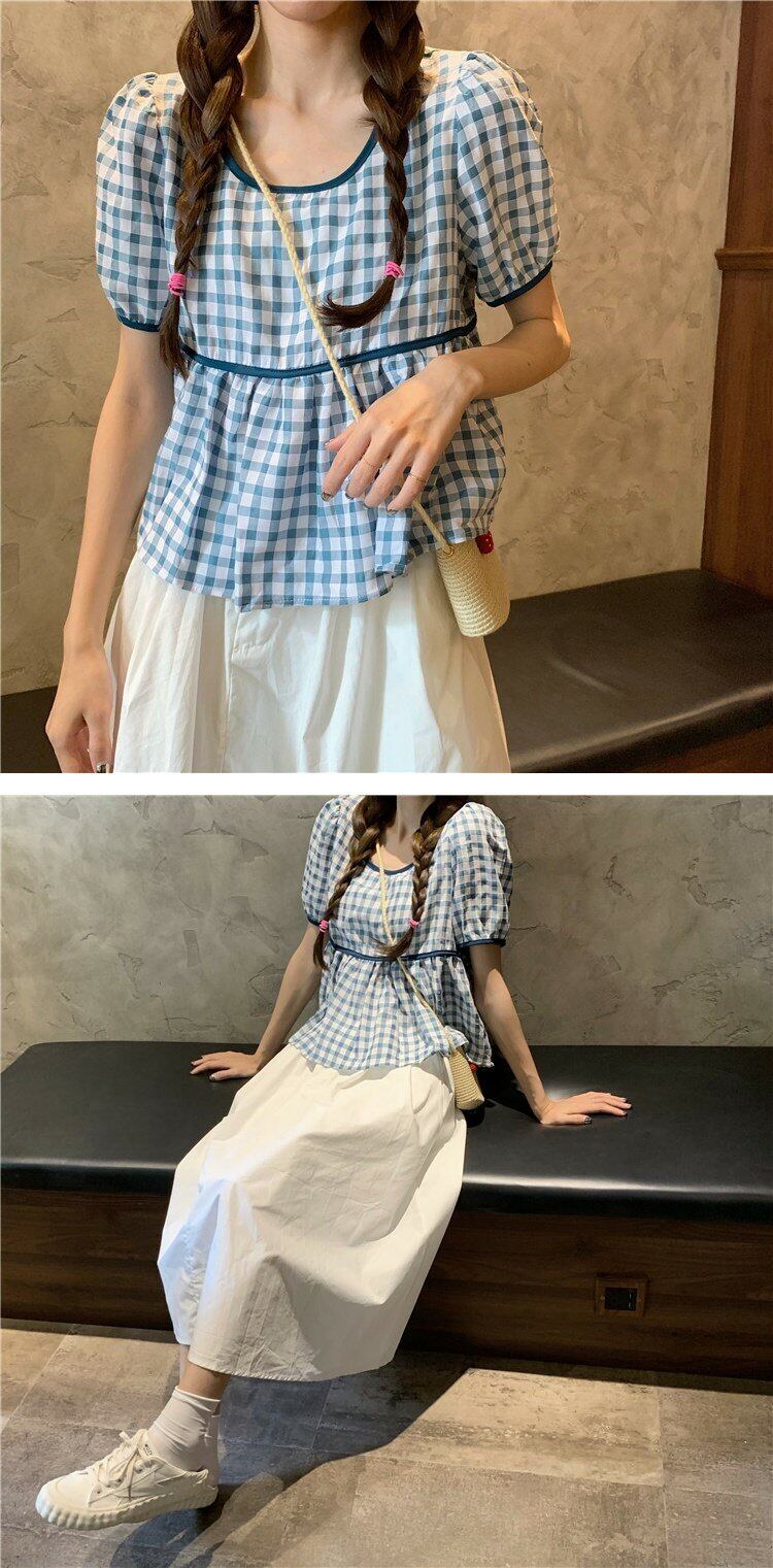 夏服格子柄シャツ トップス ハイウェストウェストスカート レディースAライン 夏物 ウエスト コーデ marchs6794618618704