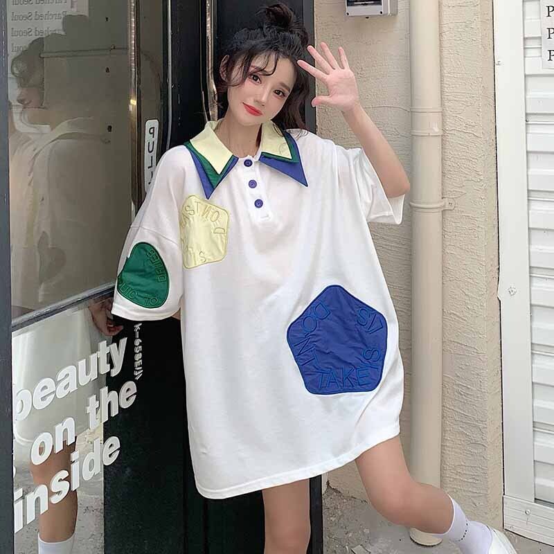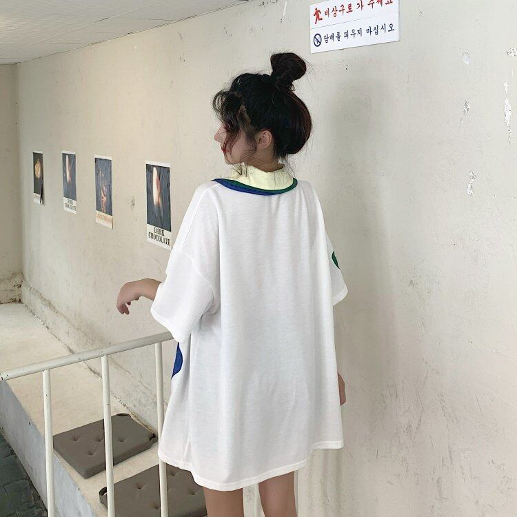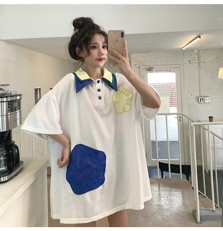 Tシャツシャツ 夏服ルーズ 大きめサイズ 夏物 Oネック ミドル丈 コーデ marchs6769375980930