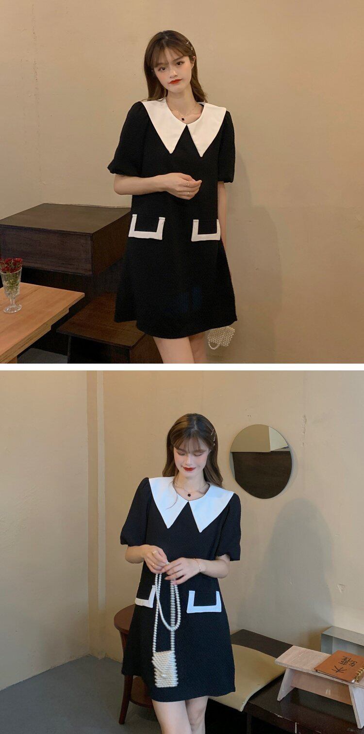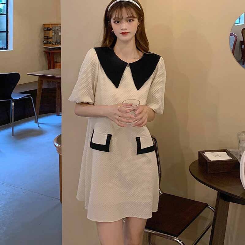 スタンダードカラールーズスリーブワンピースレディース夏服スカート レトロ 夏物 ミドル丈 コーデ marchs6781115793907