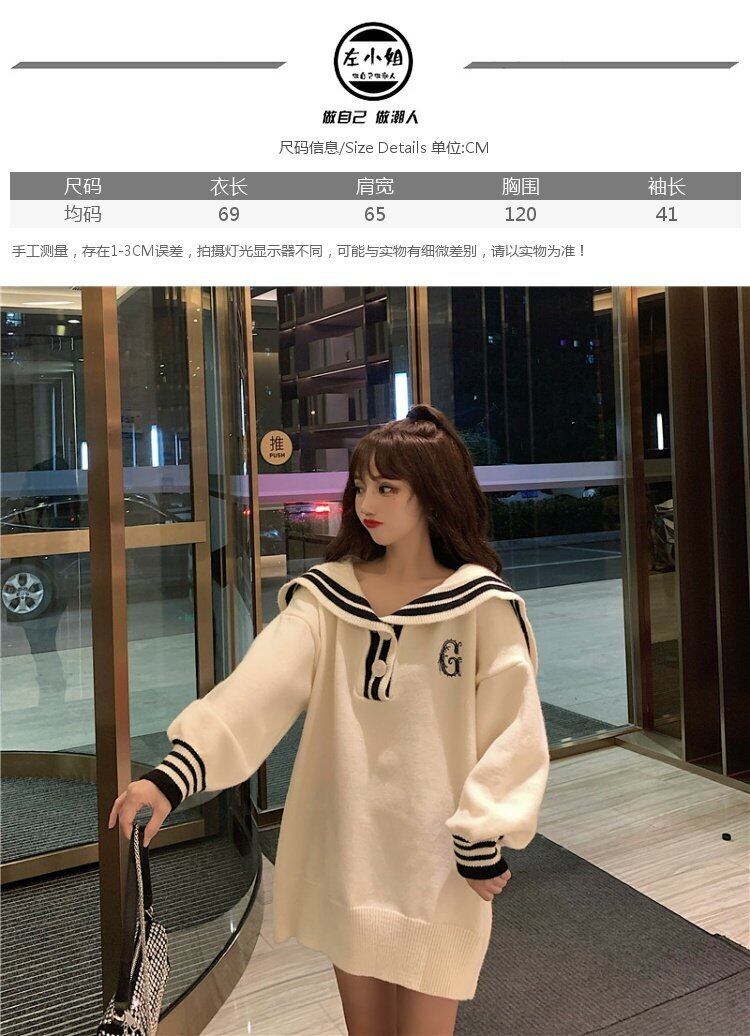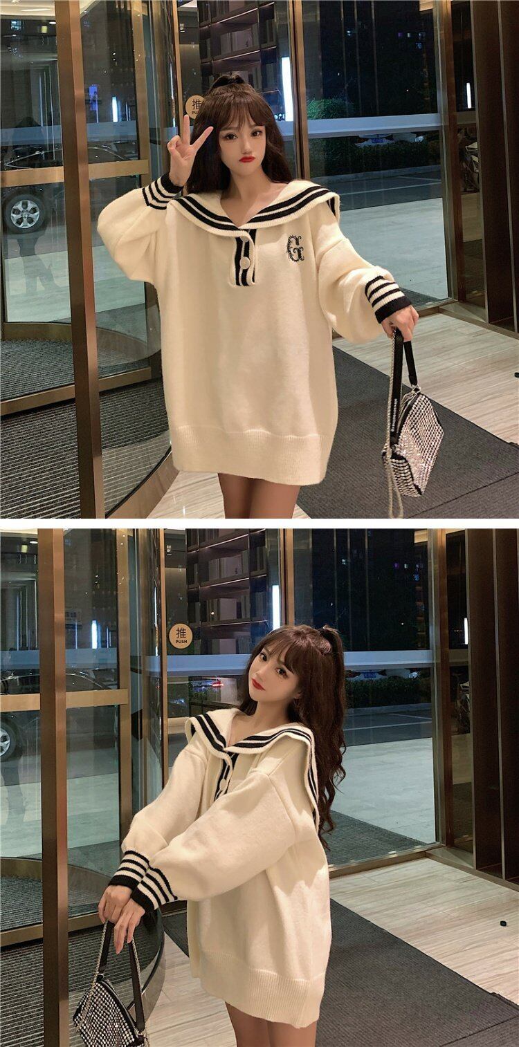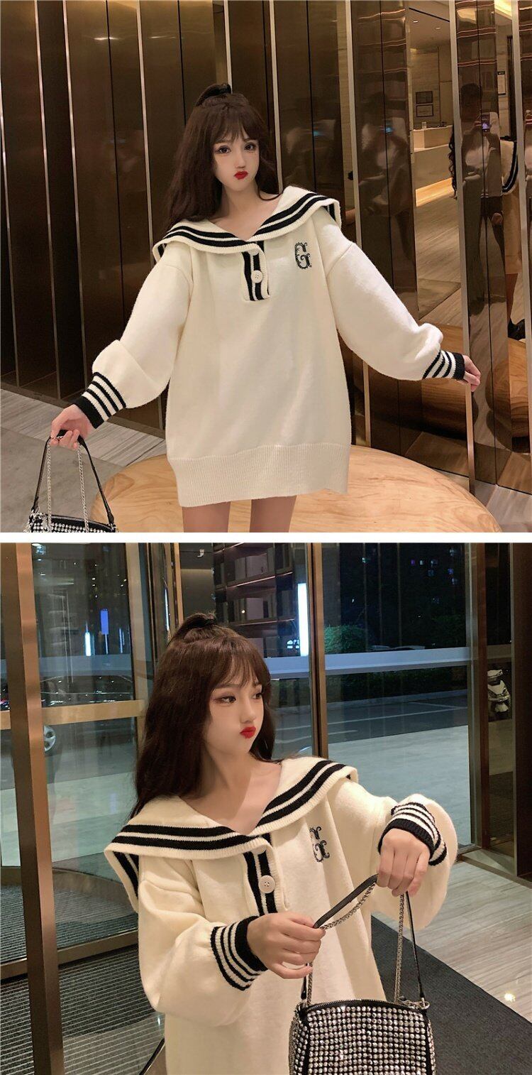 セーター スプリングプルオーバー ネイビーカラールーズスタイルトレンドコート ジャケット 春物 コーデ marchs6711713589386