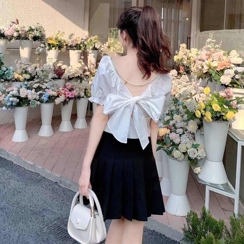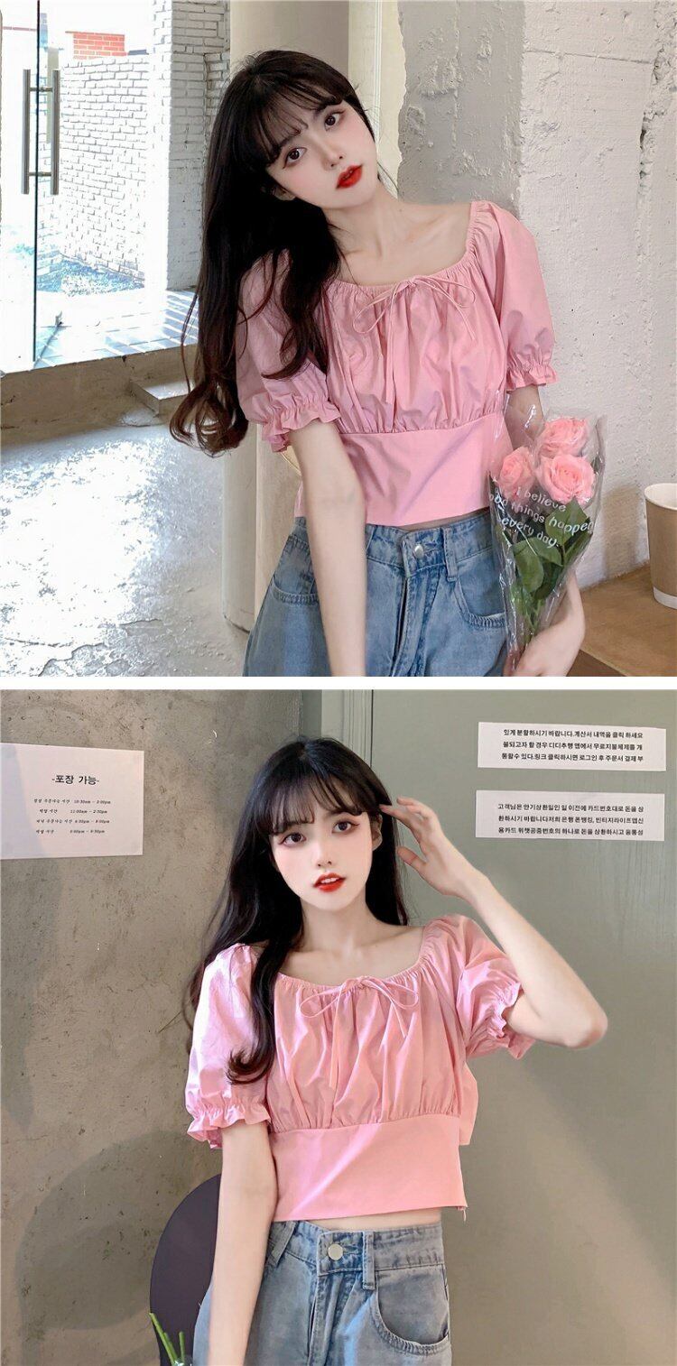 ブラウス 夏服リボンホルターショートシャツ ピンク 大人ガーリー スウィート キュート カジュアル 夏物 コーデ marchs6786200234860