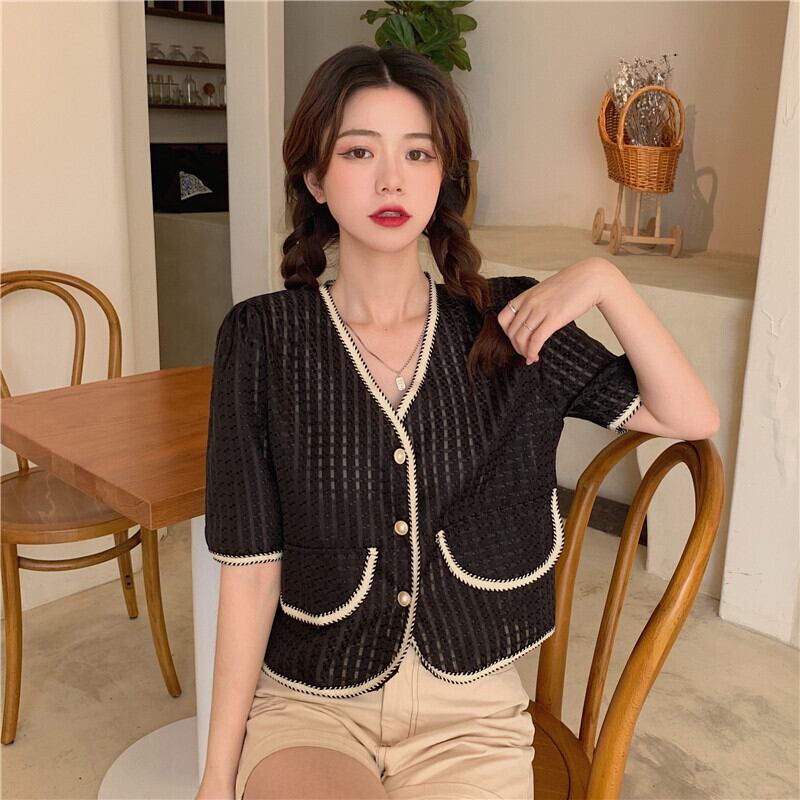 ニットカーディガンジャケット レディース夏服ルーズ薄手ショートVネックトップス 夏物 コーデ marchs6758675948711