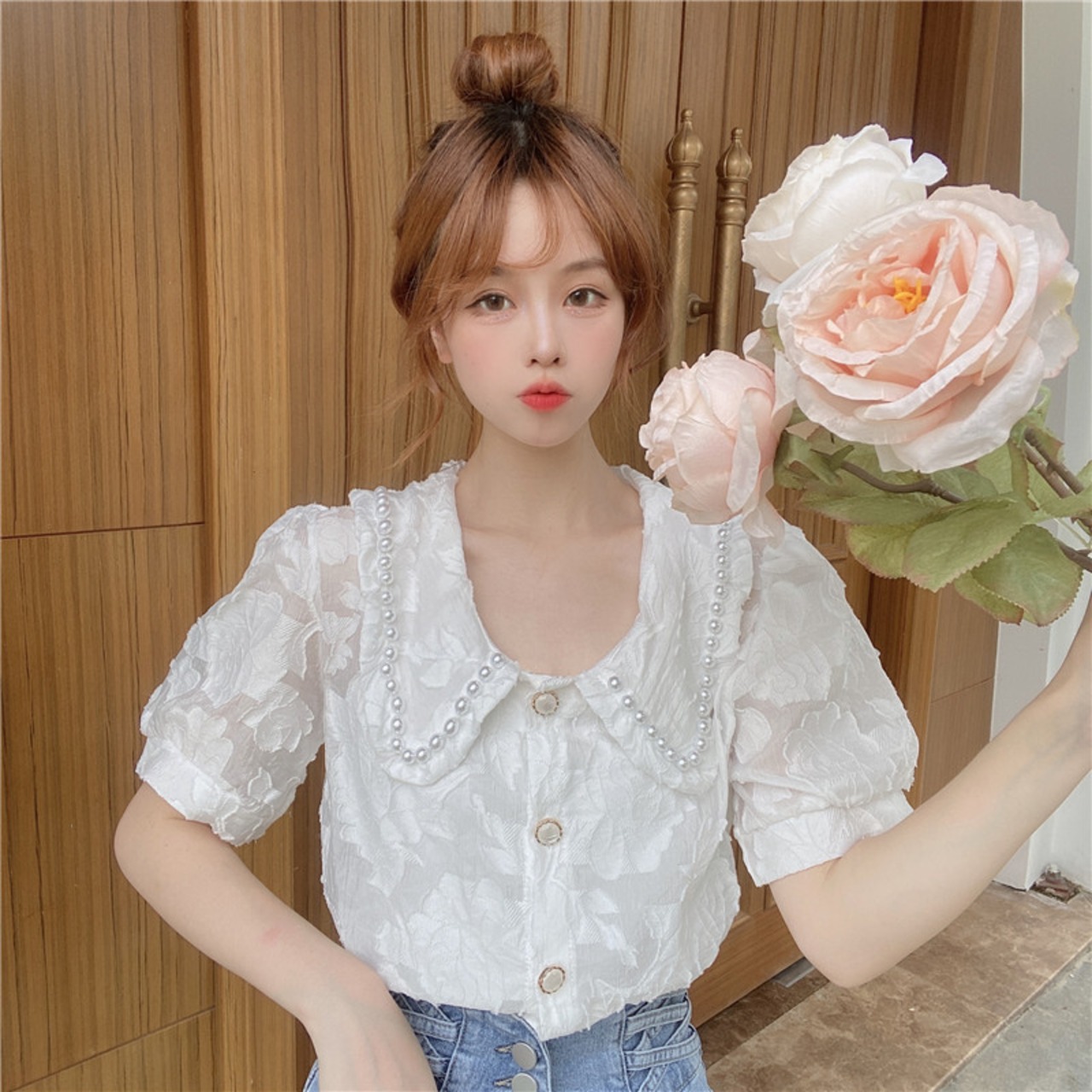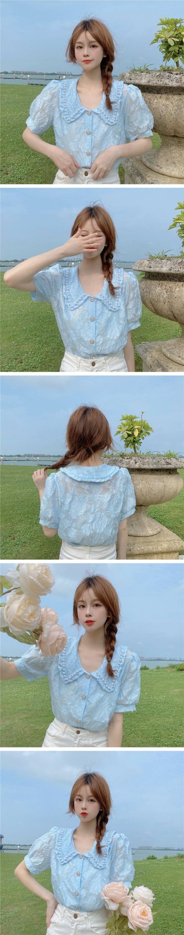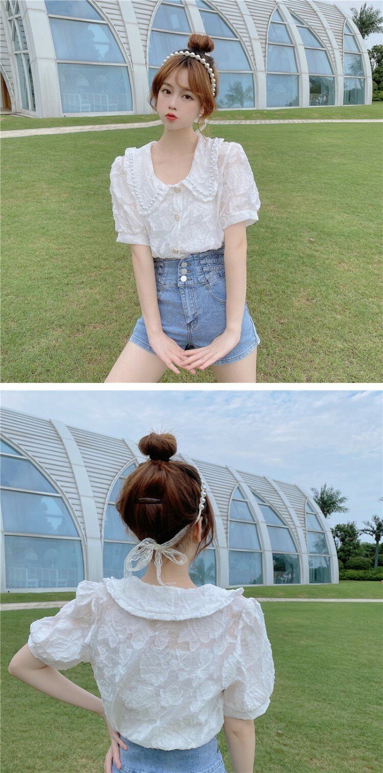 夏服スリーブカラーホワイトシャツ レディース 夏物 コーデ marchs6745217268332