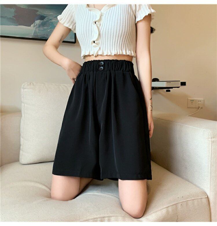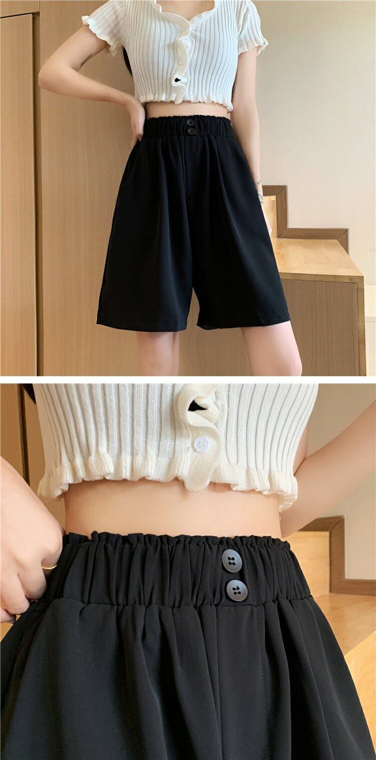 ブラックショーツ レディース夏服ルーズ薄手パンツ ハイウェストウェストカジュアル 夏物 ウエスト コーデ marchs6765912594119