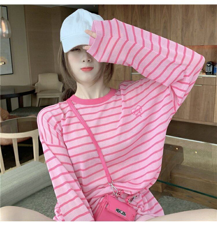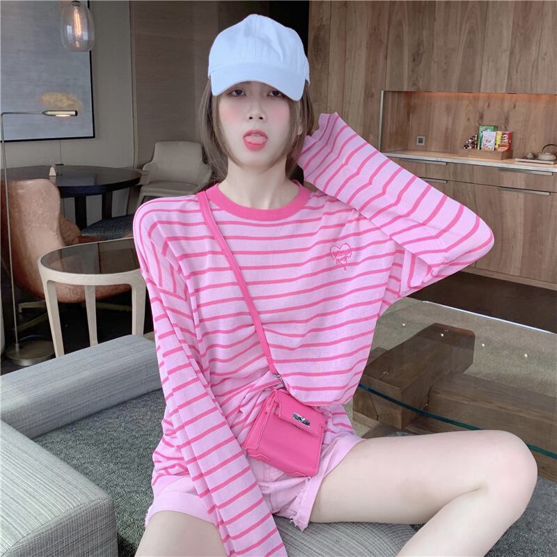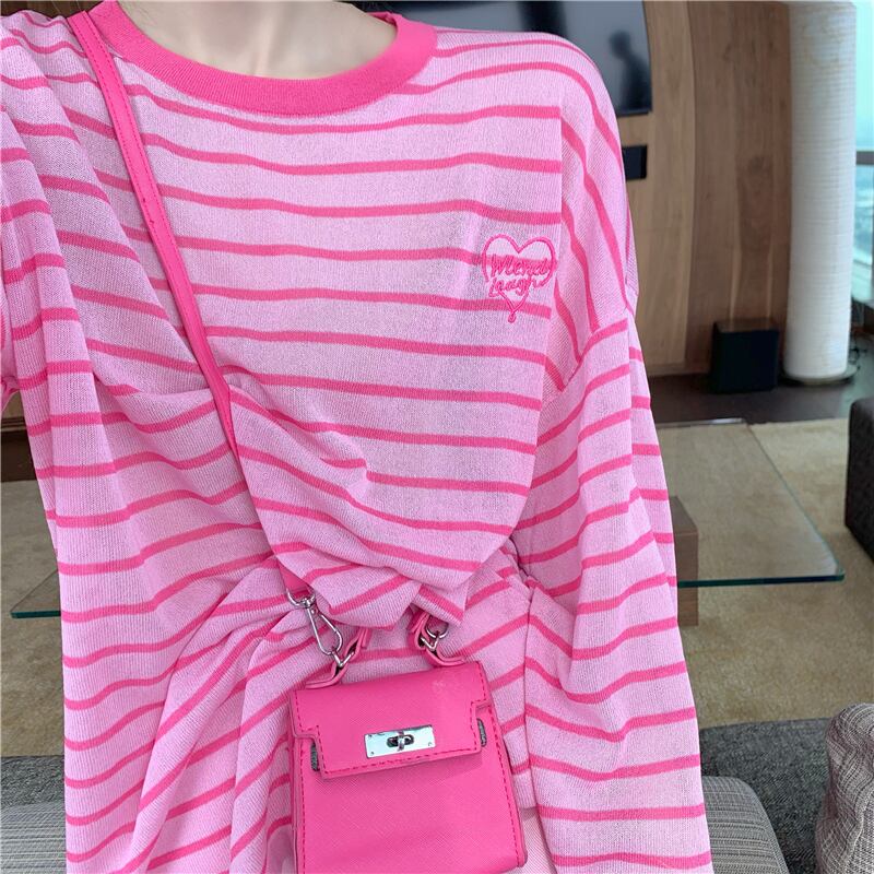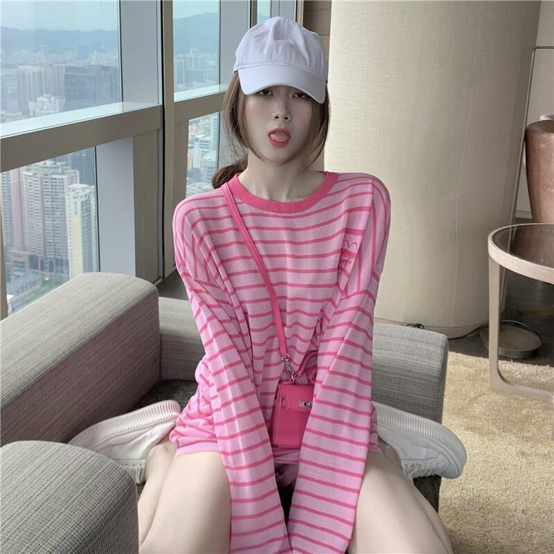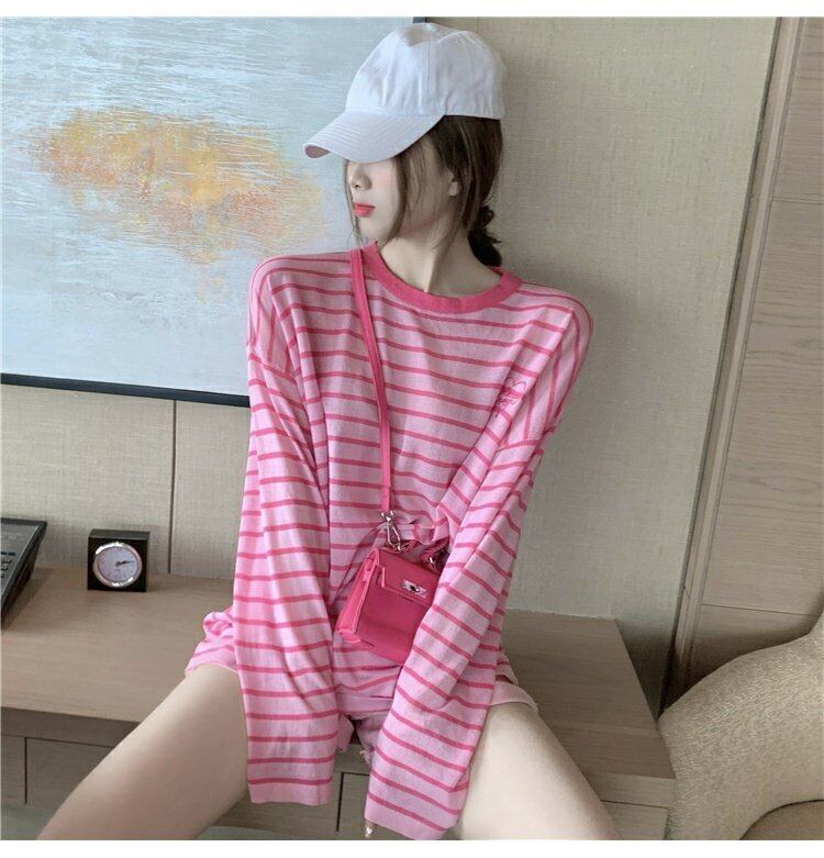 ストライプTシャツシャツ レディース夏服ルーズゆったり薄手トップス トレンド ロング 夏物 シルク 長袖 コーデ marchs6715942752540