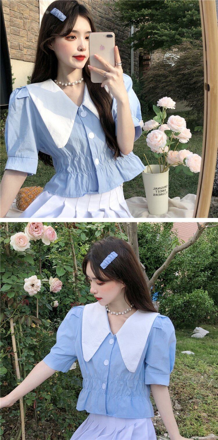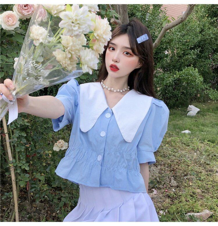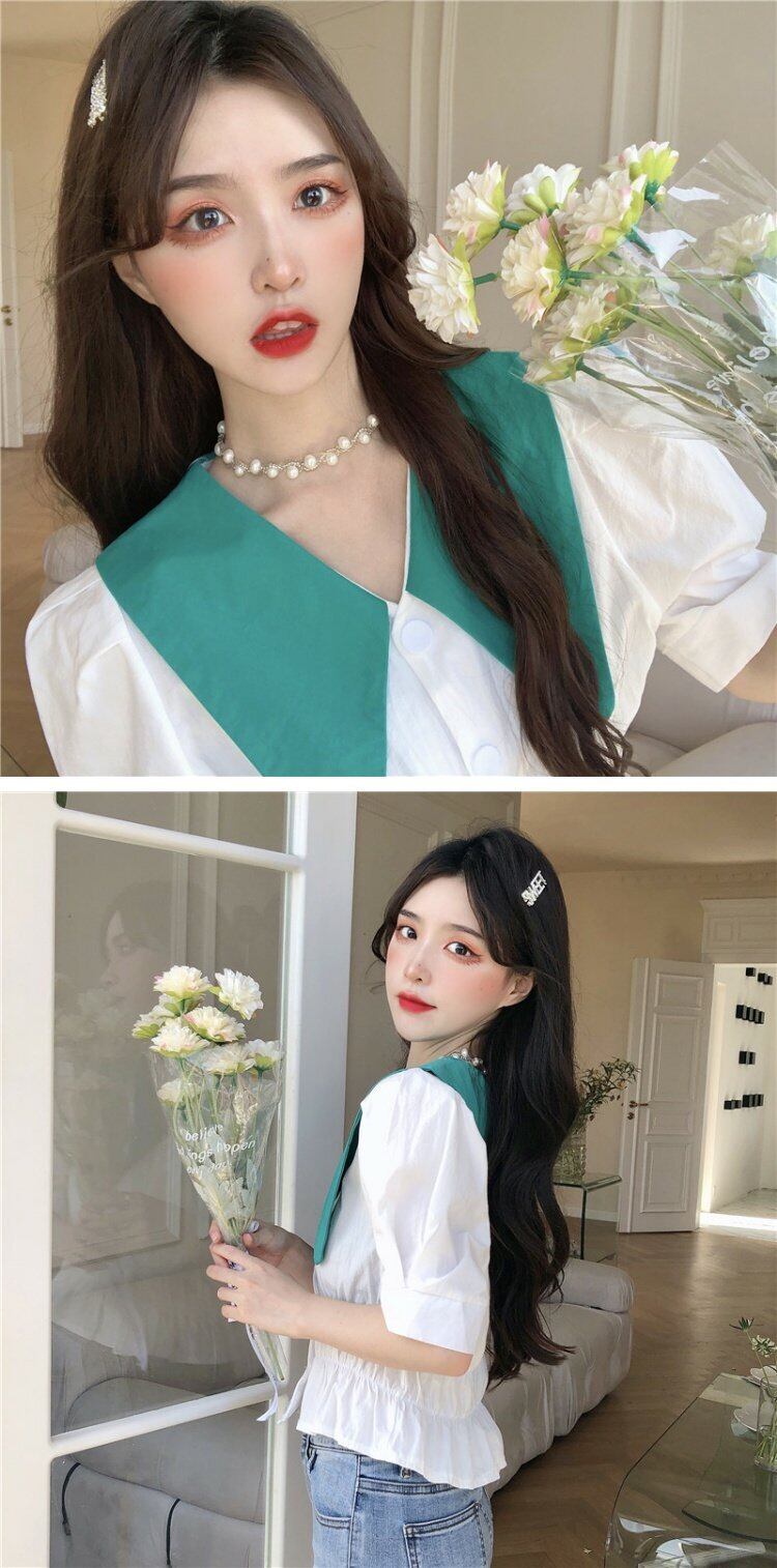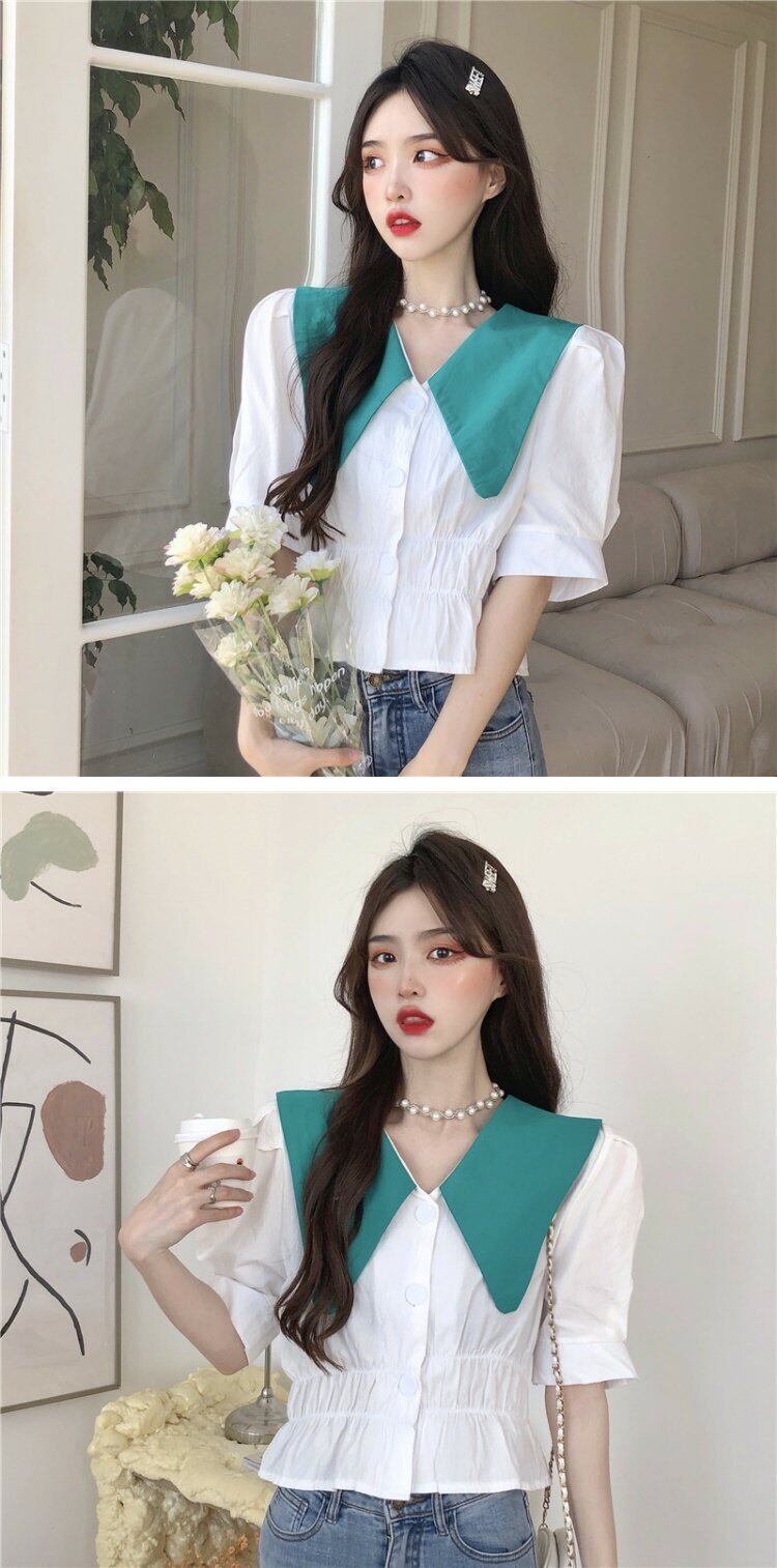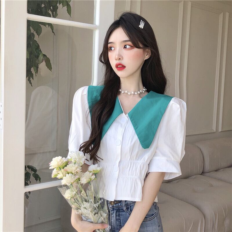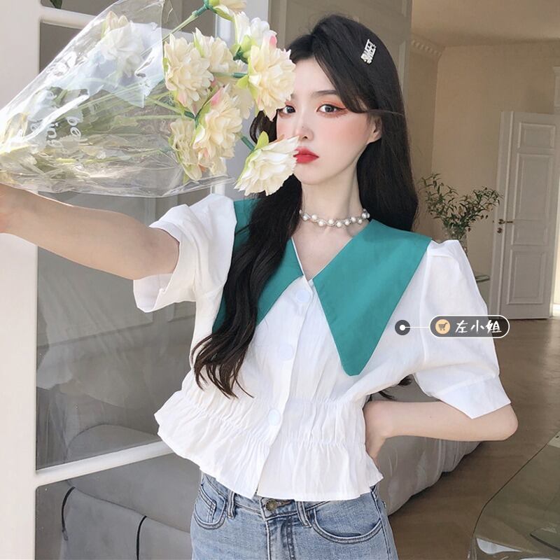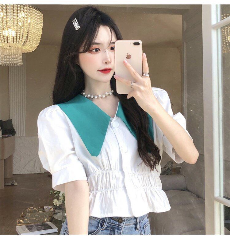 ホワイトスリーブシャツ レディース夏服カラーウェストショートトップス 夏物 ウエスト コーデ marchs674216463168