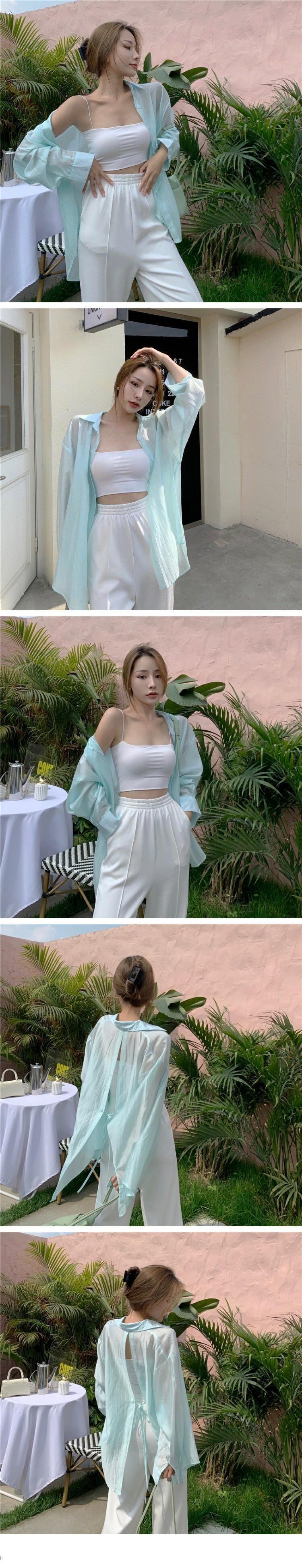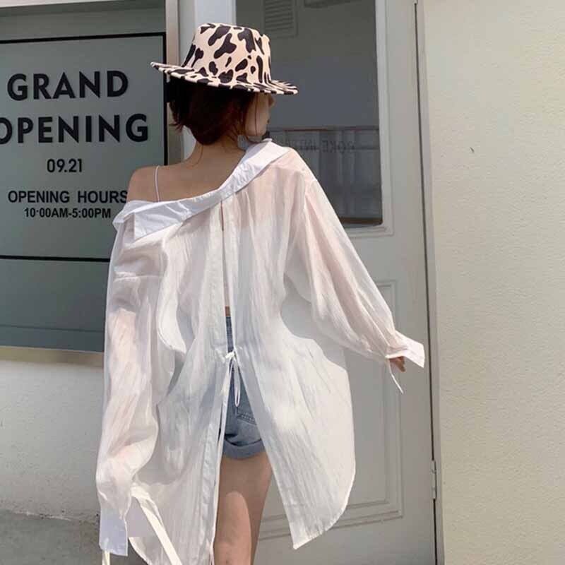 夏服ルーズ薄手シフォンホルターシャツ レディースホワイト ロング 夏物 長袖 コーデ marchs6725652574403