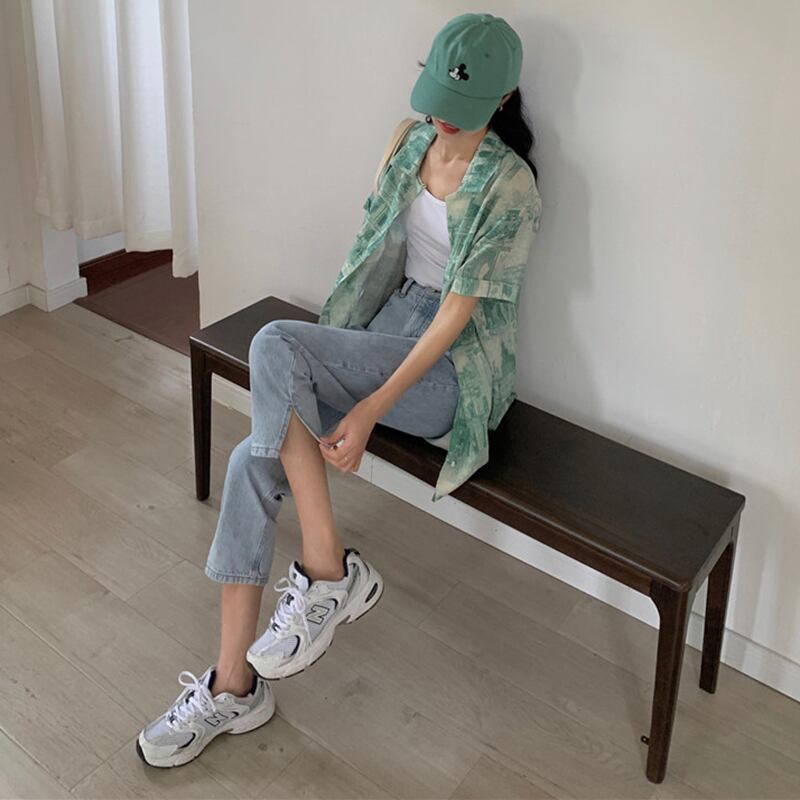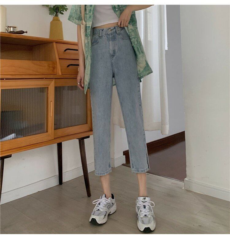ルーズジーンズ 夏服ワンピース韓国ファッションハイウェストスリムクロップドパンツ レッド 夏物 スタイル ウエスト コーデ marchs6718015230875