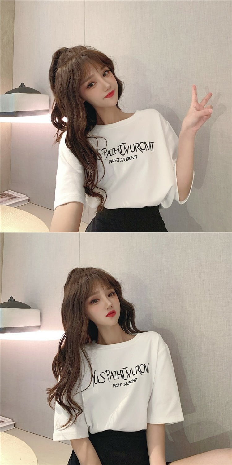 夏服ヴィンテージTシャツレディースブラックラウンドネックルーズトップス 夏物 Oネック ビンテージ コーデ marchs6748827193265