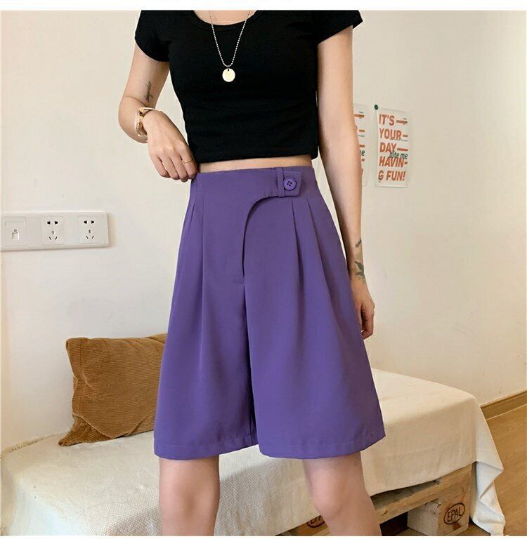 ショーツ 夏服ハイウェストウェストパンツ レディース 夏物 ワイドレッグ ワイドパンツ パープル ウエスト コーデ marchs671093557592
