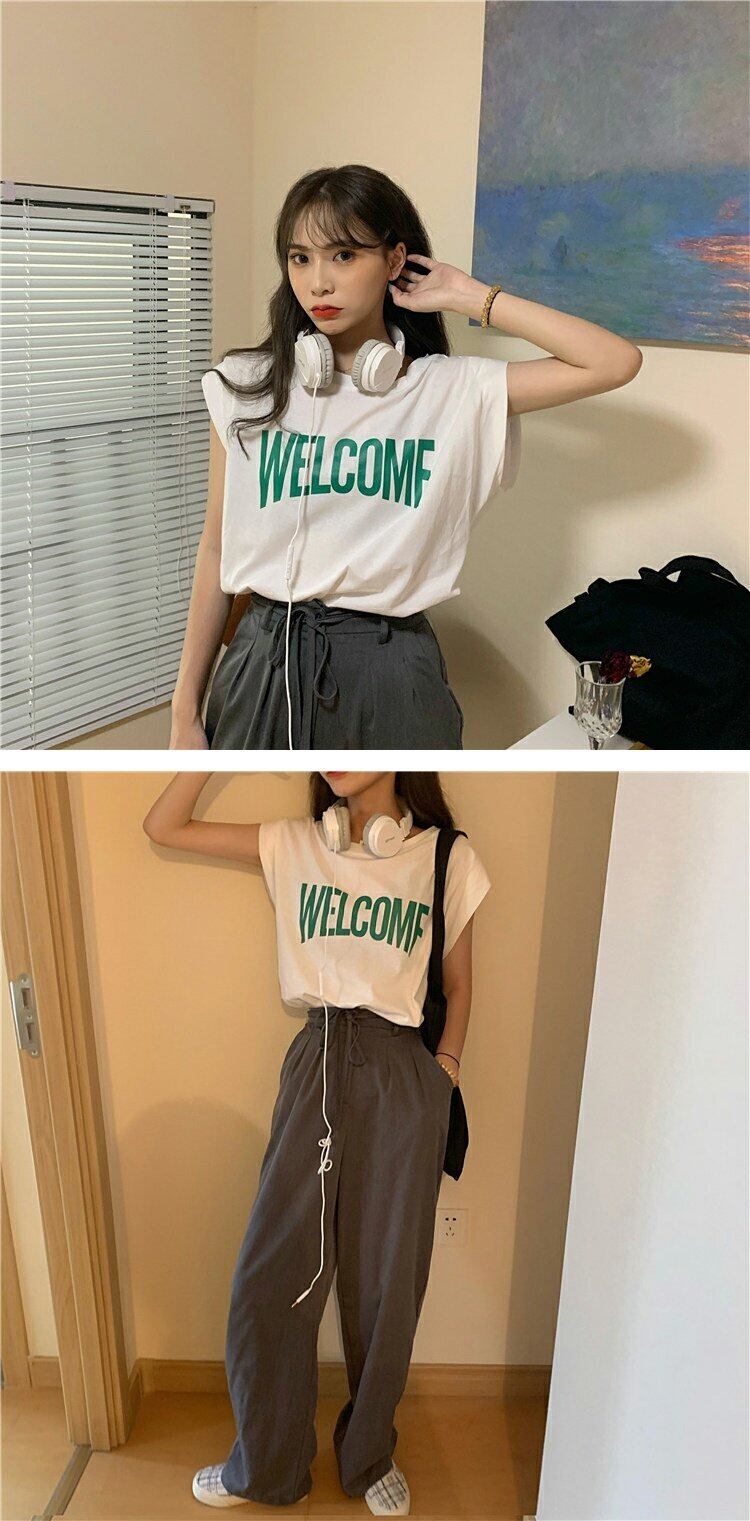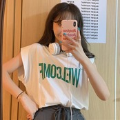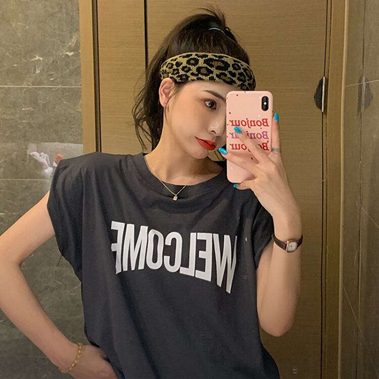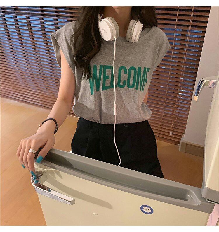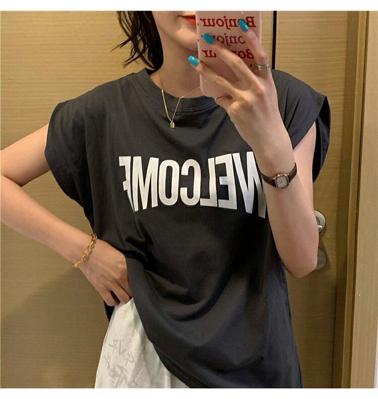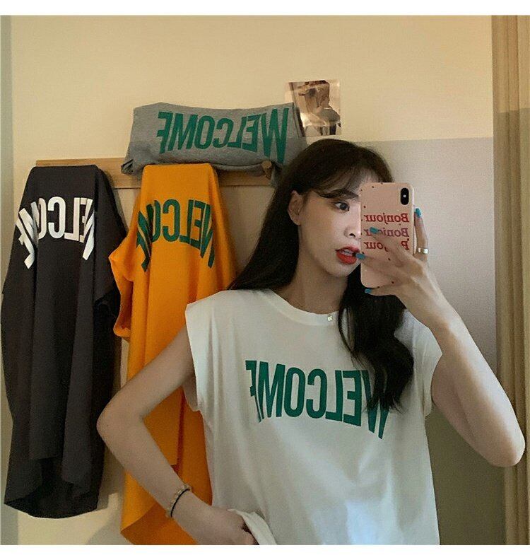 夏服韓国ファッションルーズトップス ノースリーブオレンジTシャツレディース 夏物 スタイル ウエスト コーデ marchs6782223340760
