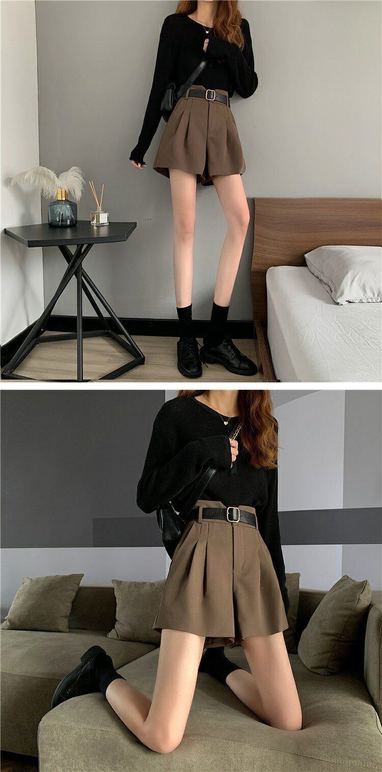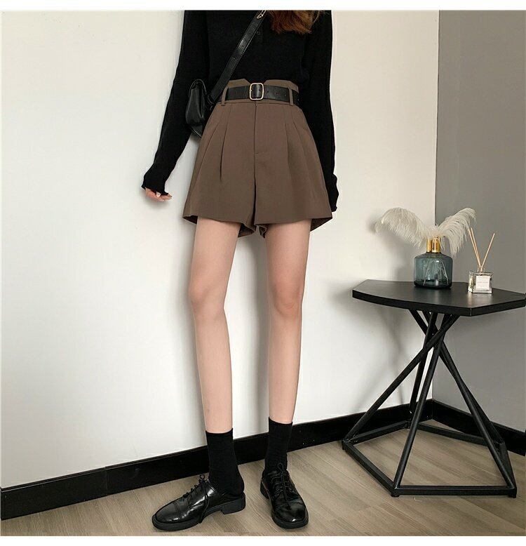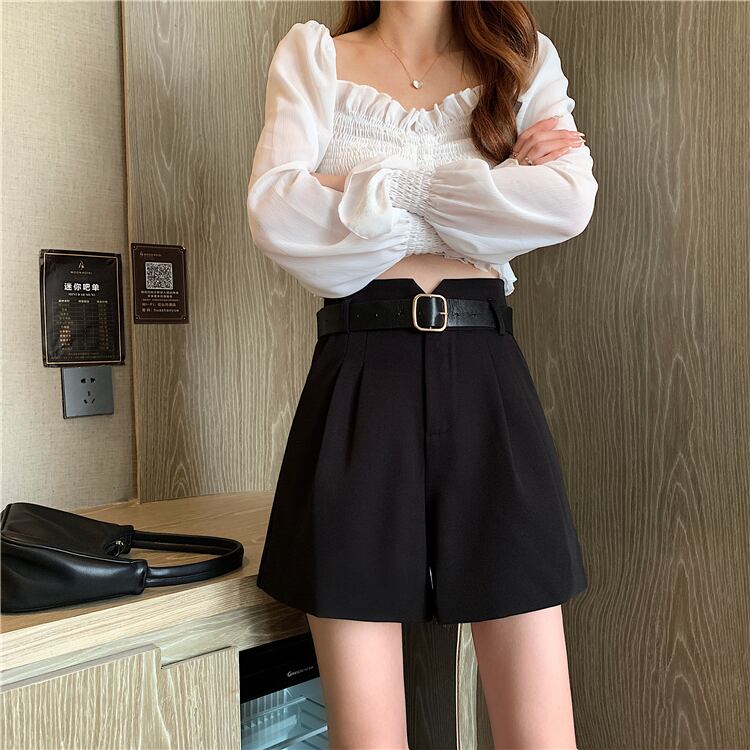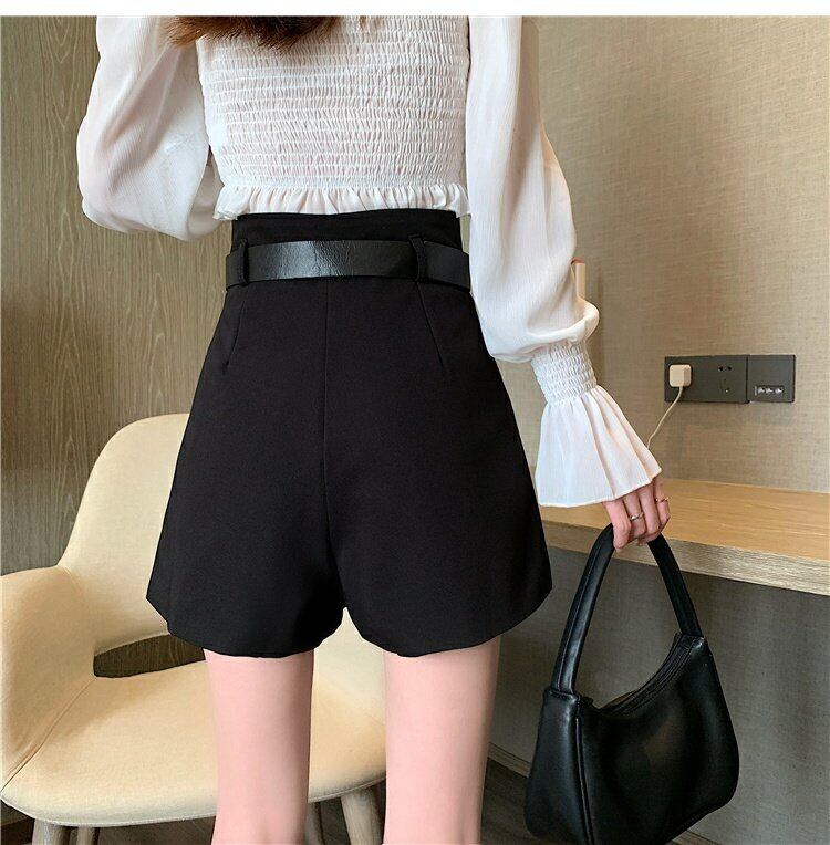 カラーパンツ 夏服カジュアル薄手ルーズハイウェストウェストワイドレッグブラックカーキショーツ 夏物 ワイドパンツ ウエスト コーデ marchs6799982988993