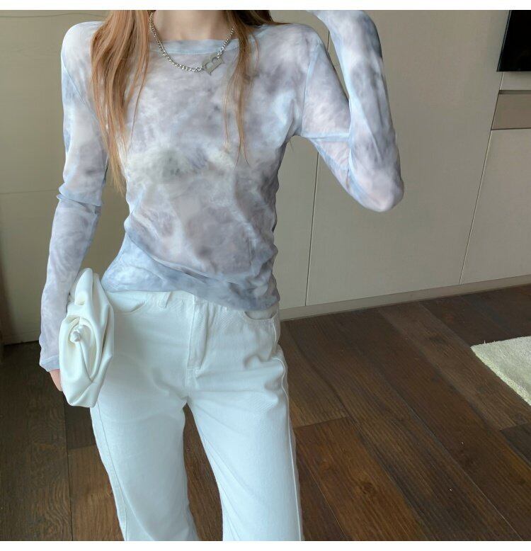 夏服メッシュゆったり薄手Tシャツ ロング レッド 夏物 長袖 コーデ marchs6768784351425