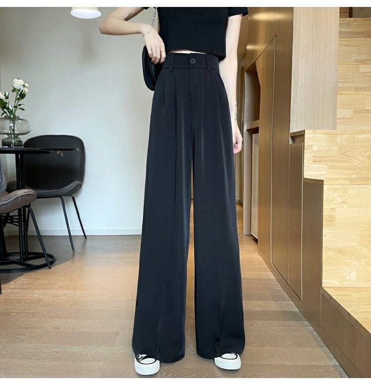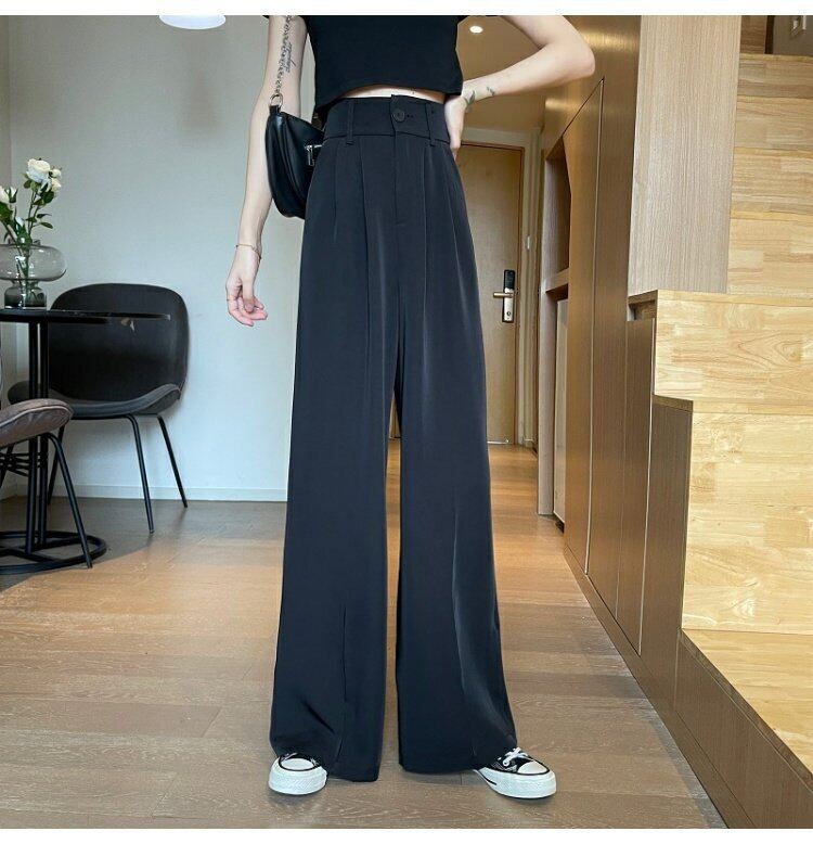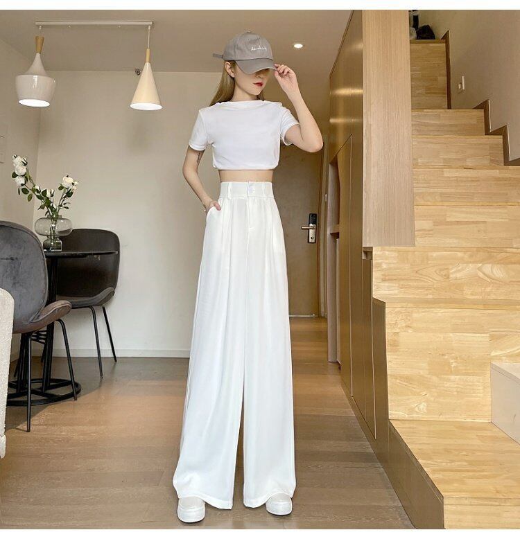夏服韓国ファッションルーズハイウェストウェストホワイトパンツ 夏物 ワイドレッグ ワイドパンツ スタイル ウエスト コーデ marchs6764070170860
