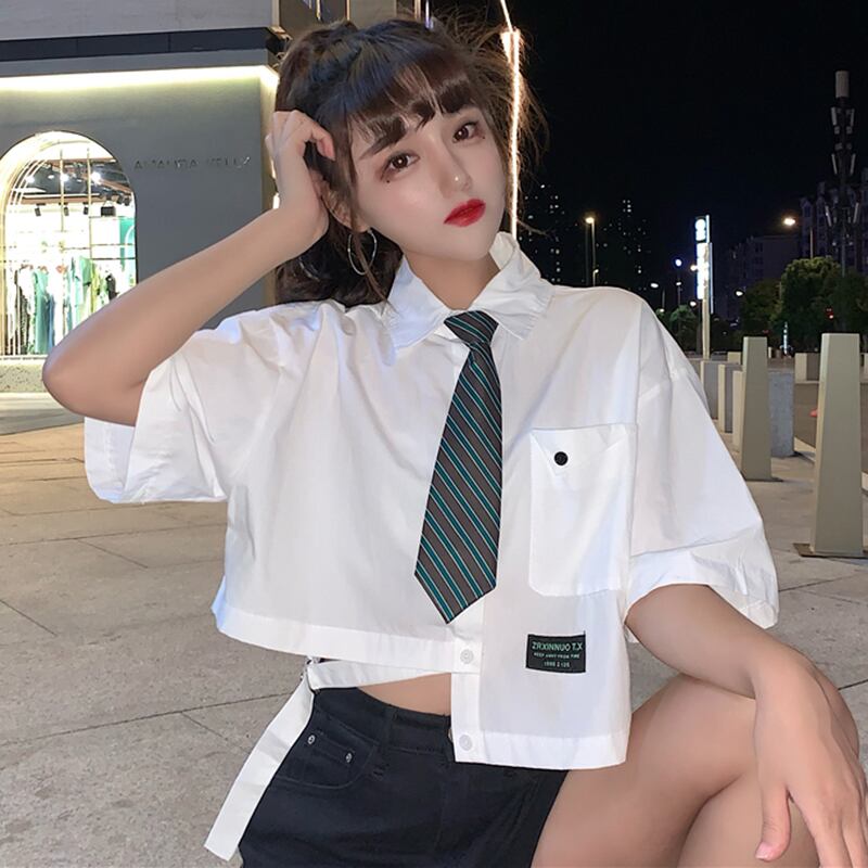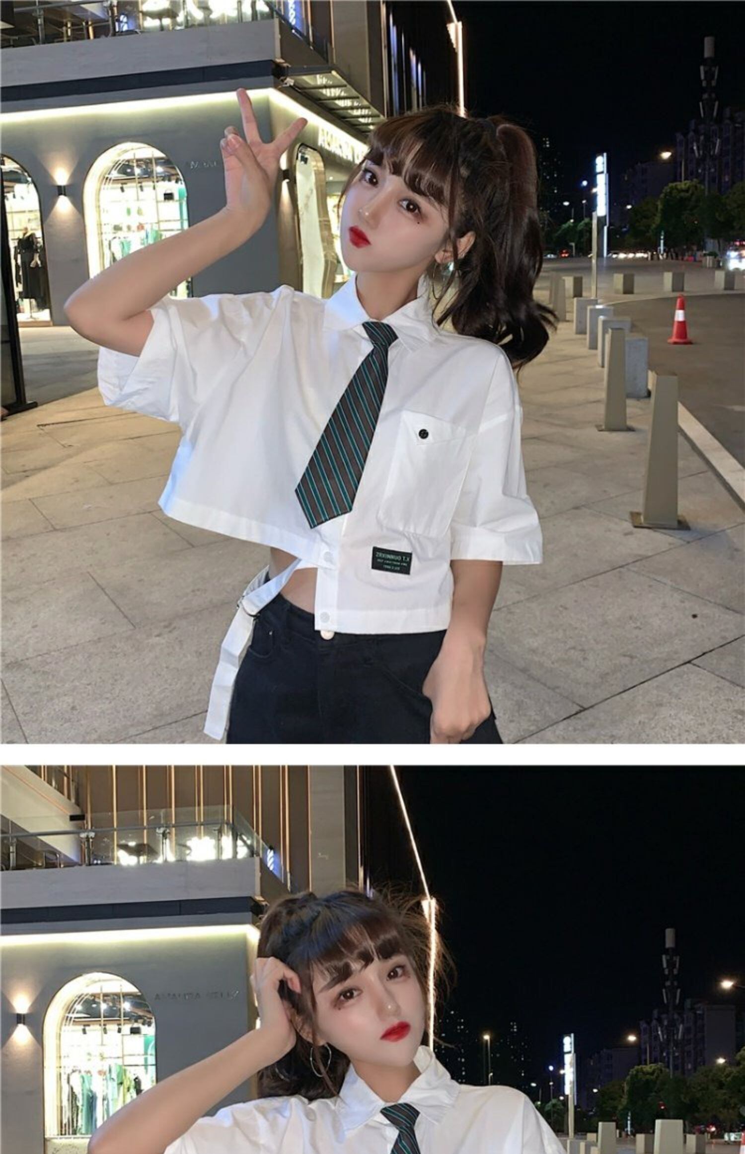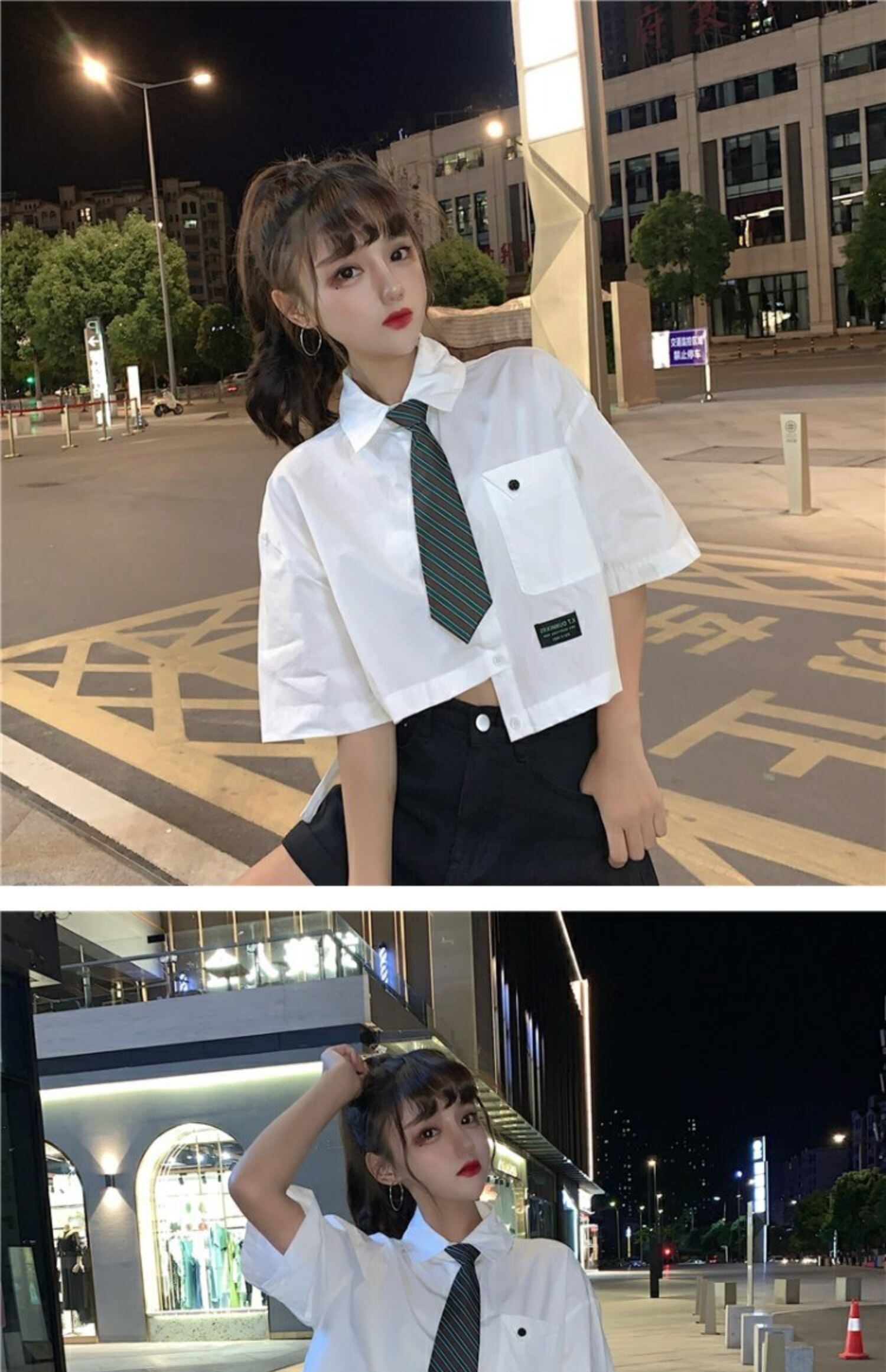 カラーホワイトシャツ レディース夏服ショートクロップトップ トップス 夏物 コーデ marchs6724115085944