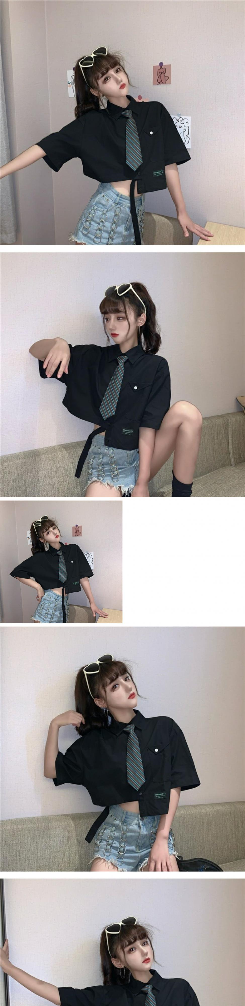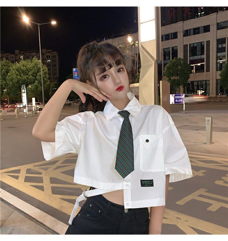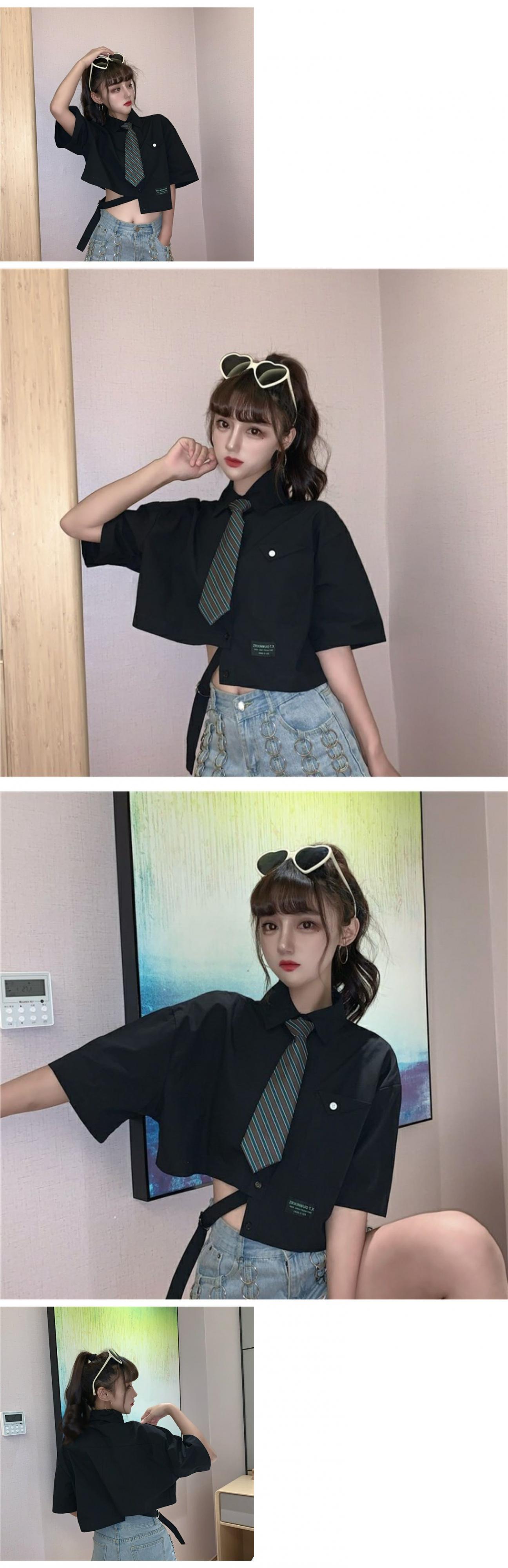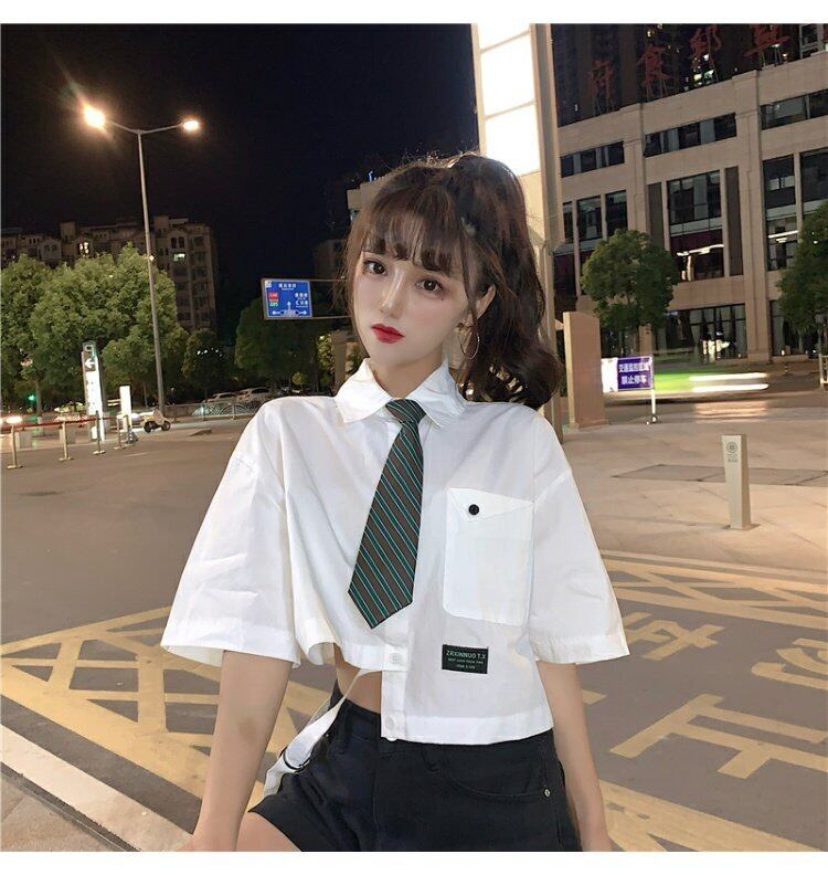 カラーホワイトシャツ レディース夏服ショートクロップトップ トップス 夏物 コーデ marchs6724115085944