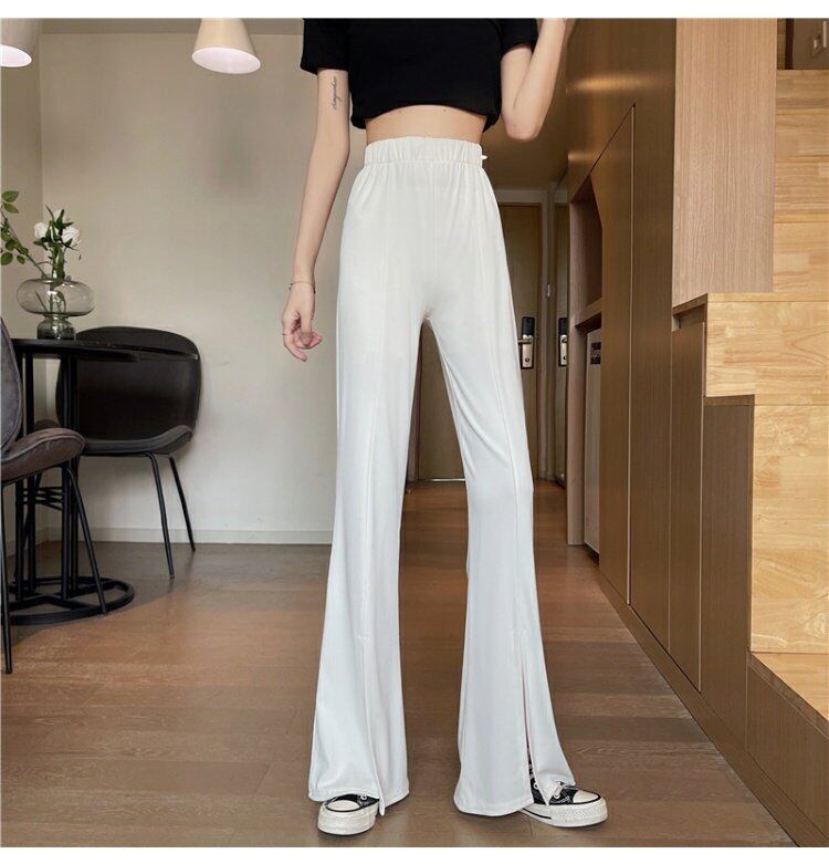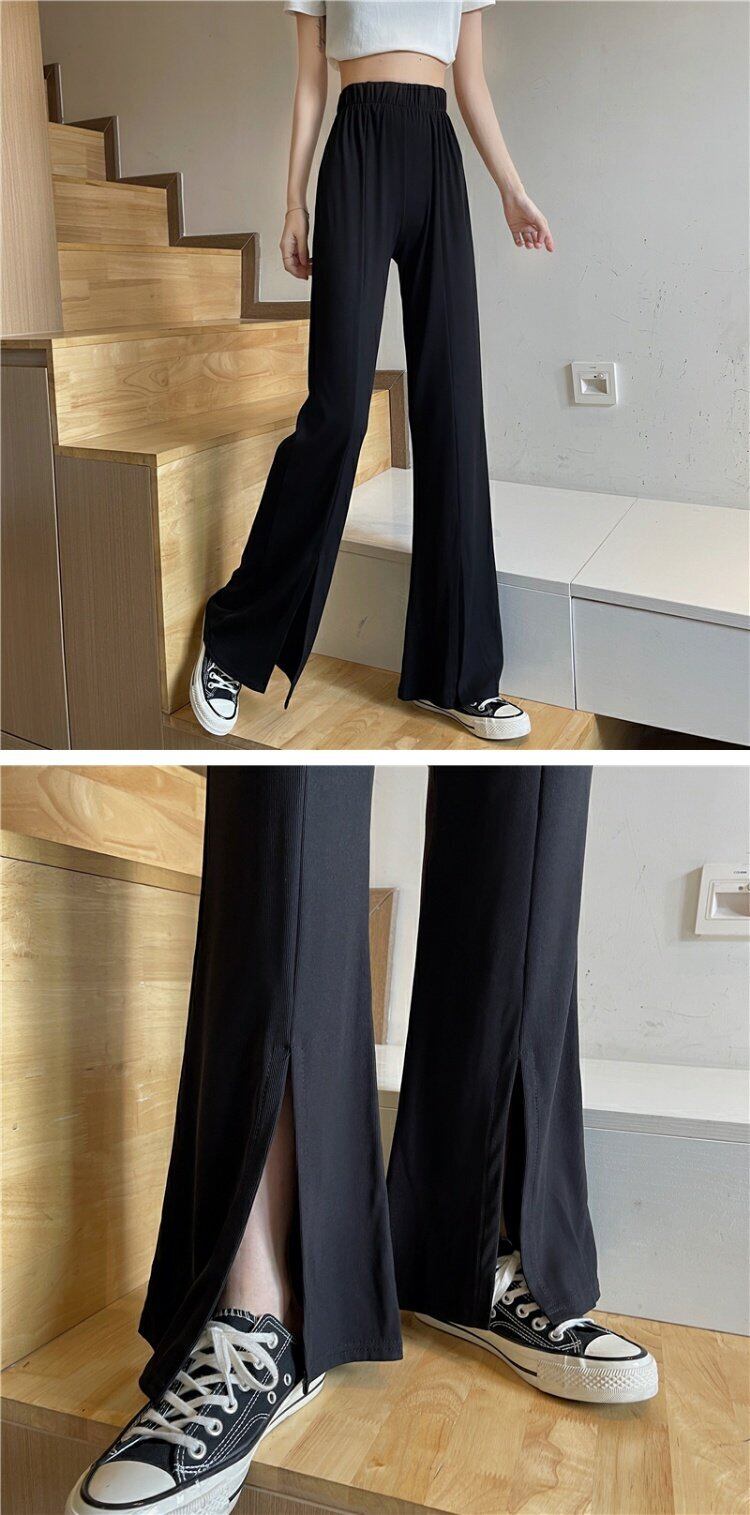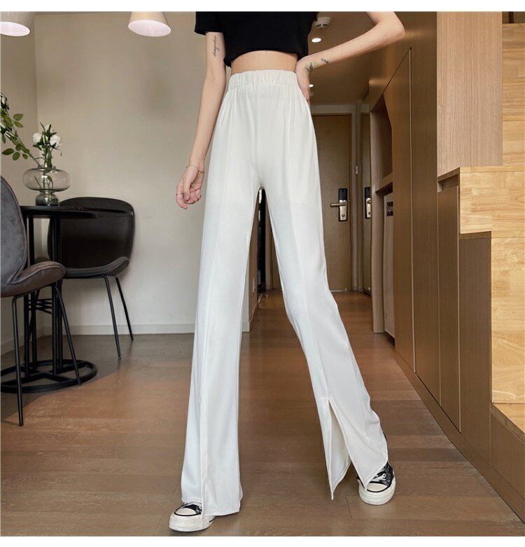 夏服韓国ファッションハイウェストウェスト薄手ワイドレッグパンツ カジュアルレディース 夏物 ワイドパンツ スタイル ウエスト コーデ marchs6750738511271