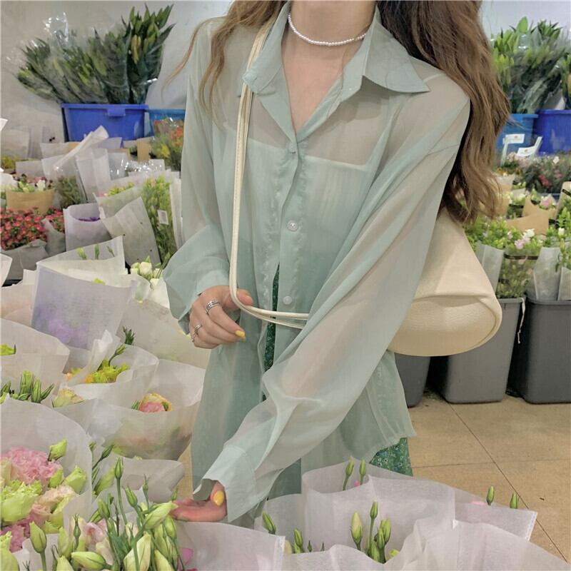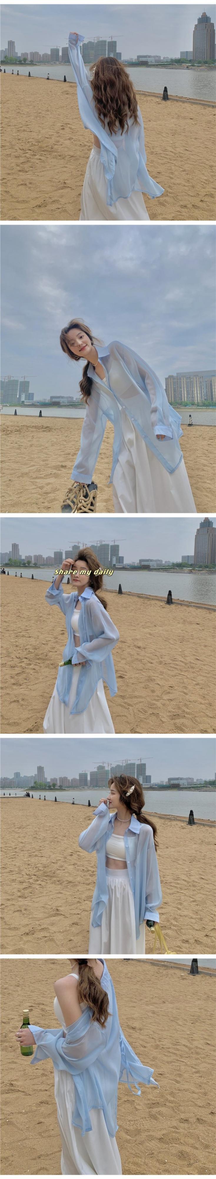 夏服バックストラップ トップス 薄手ブルーシャツ ジャケット レディース ロング 夏物 長袖 コーデ marchs6776467949830