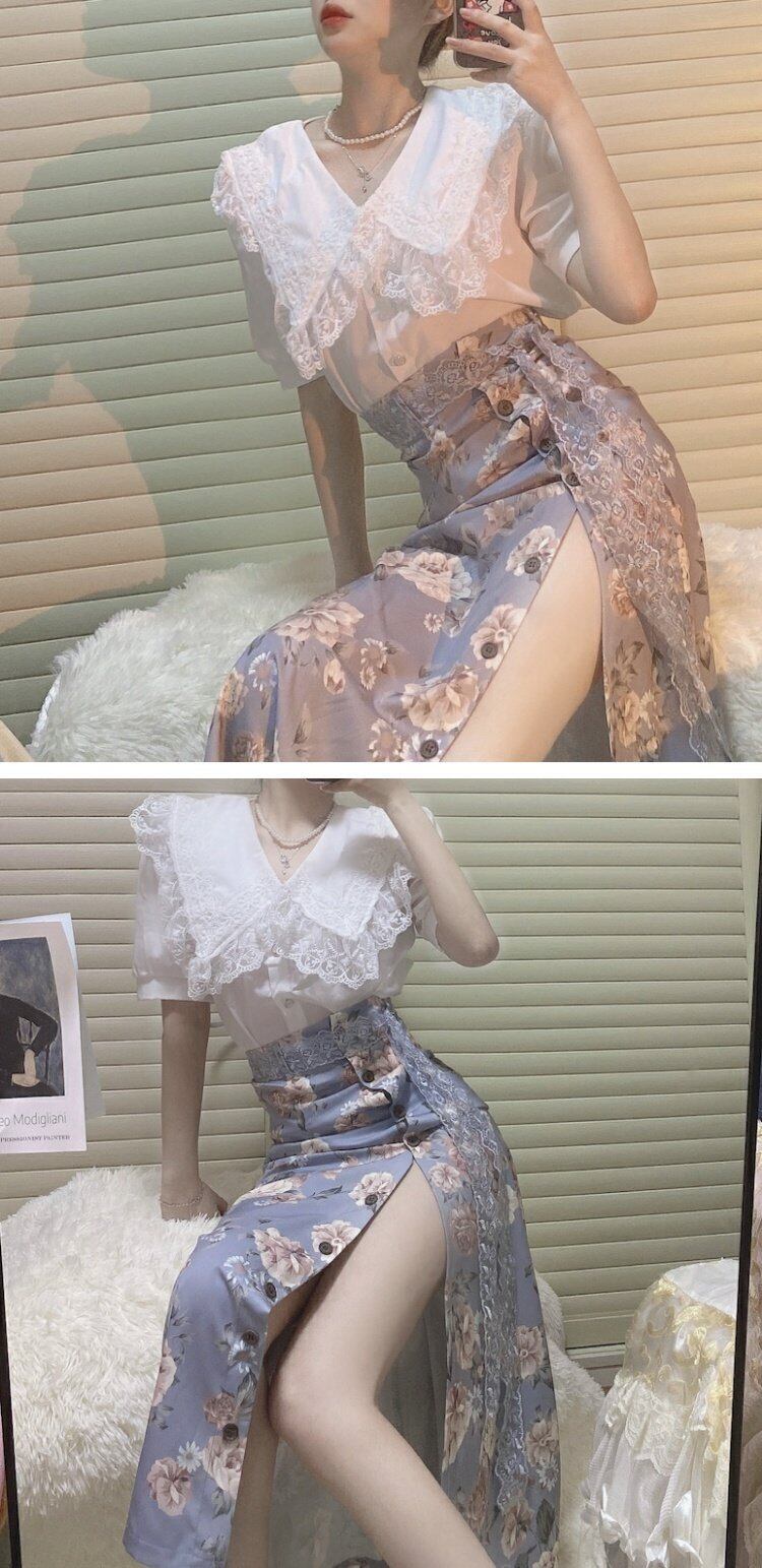 レースカラーホワイトシャツ レディース夏服スリーブ 夏物 コーデ marchs6792540930320