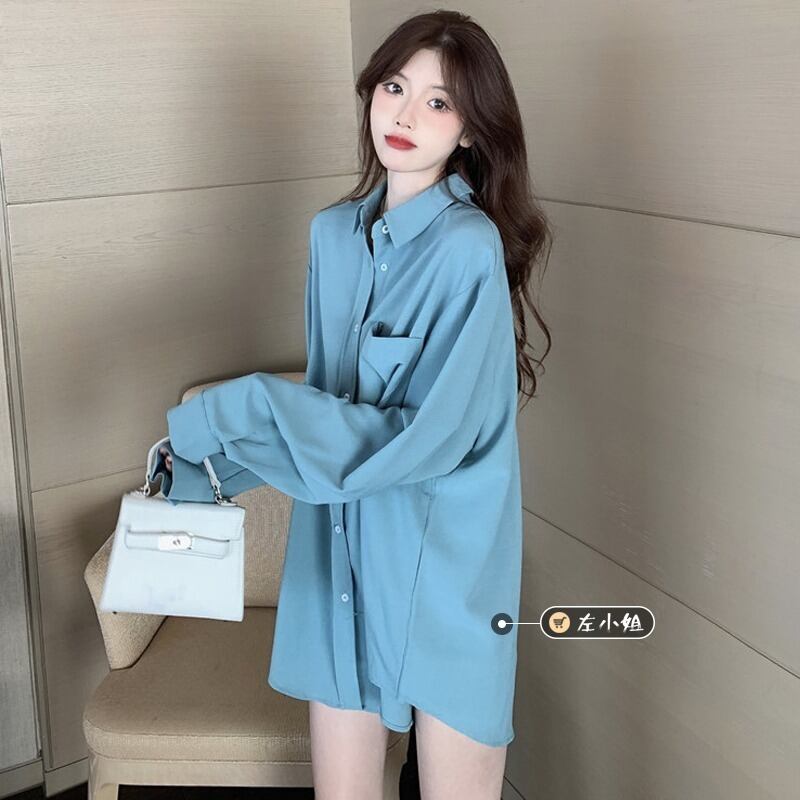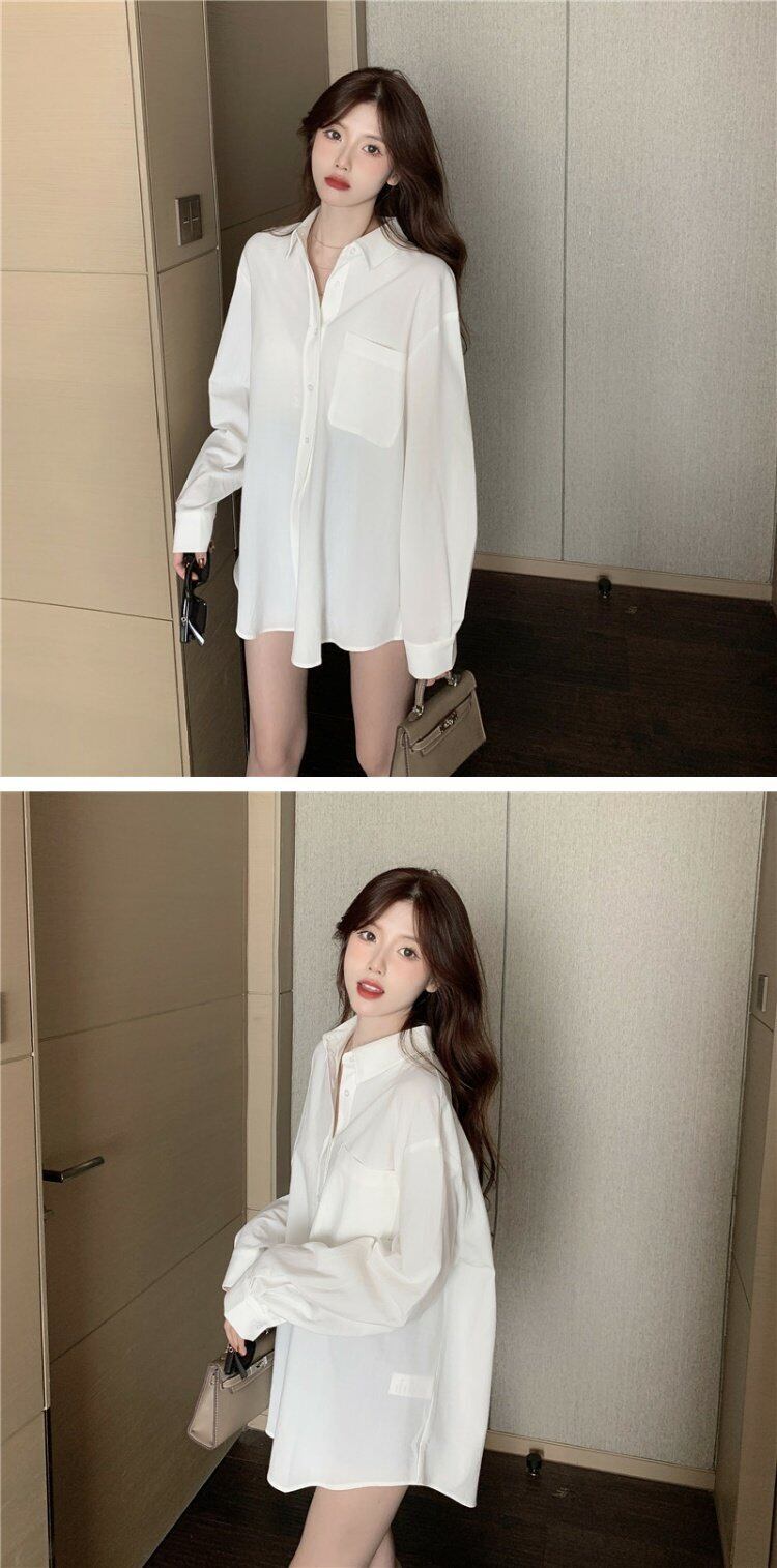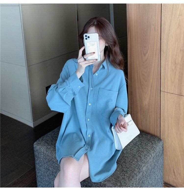 スプリング韓国ファッション薄手シャツ レディースルーズ ロング 春物 スタイル 長袖 ミドル丈 コーデ marchs6789404127475