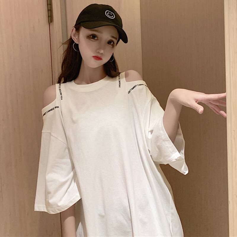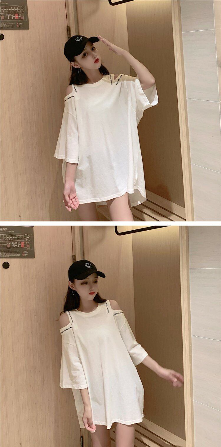 スプリング韓国ファッションルーズストラップレスTシャツトップス 春物 スタイル ミドル丈 コーデ marchs6741271342258
