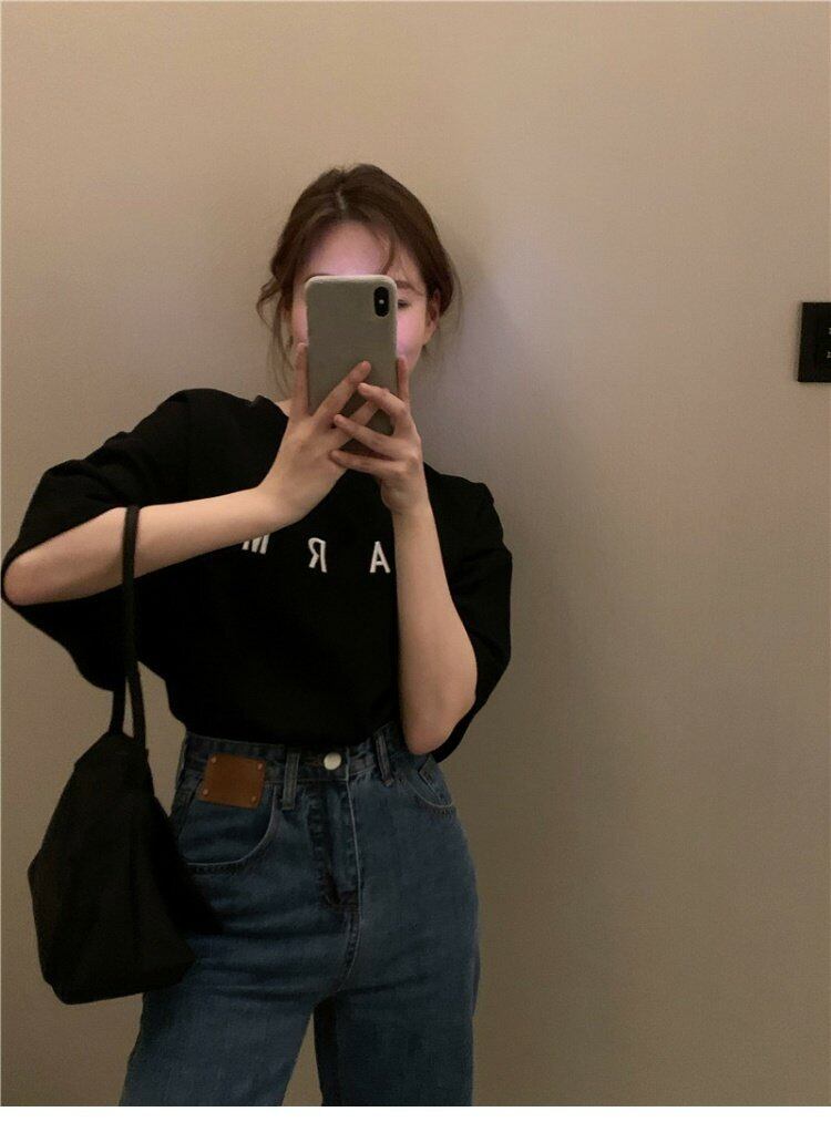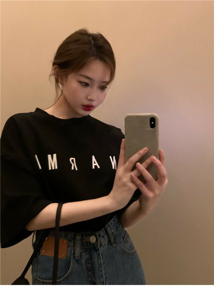 シャツ Tシャツレディース夏服韓国ファッショントレンドプリントルーズラウンドネックトップス 夏物 Oネック スタイル ミドル丈 コーデ marchs6783699458931