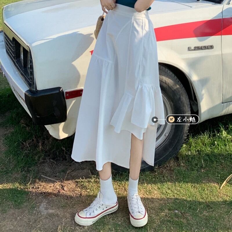 スカート 夏服スタイルソリッド カラーストレッチウェスト エラスティック 伸縮 夏物 ソリッドカラー ウエスト ミドル丈 コーデ marchs6748140660608