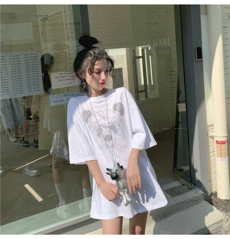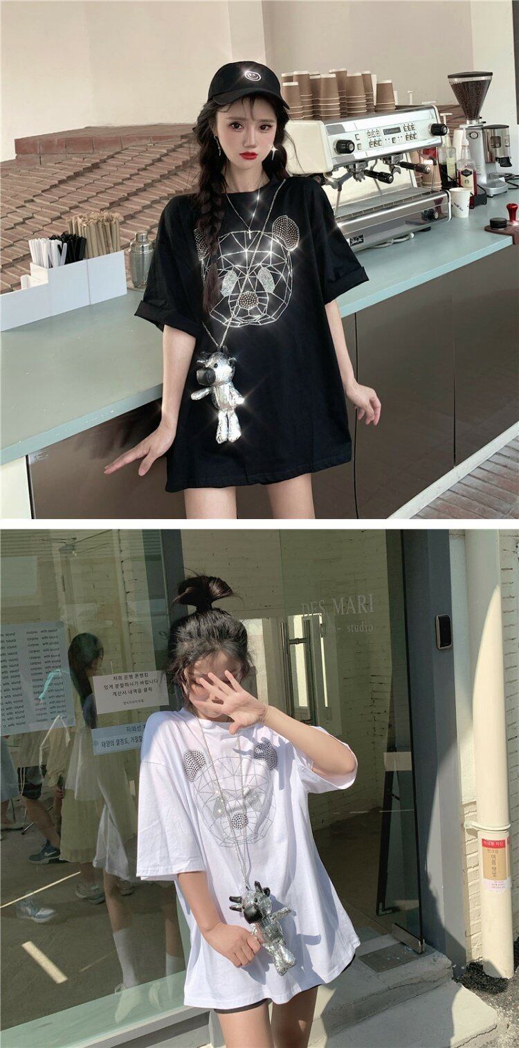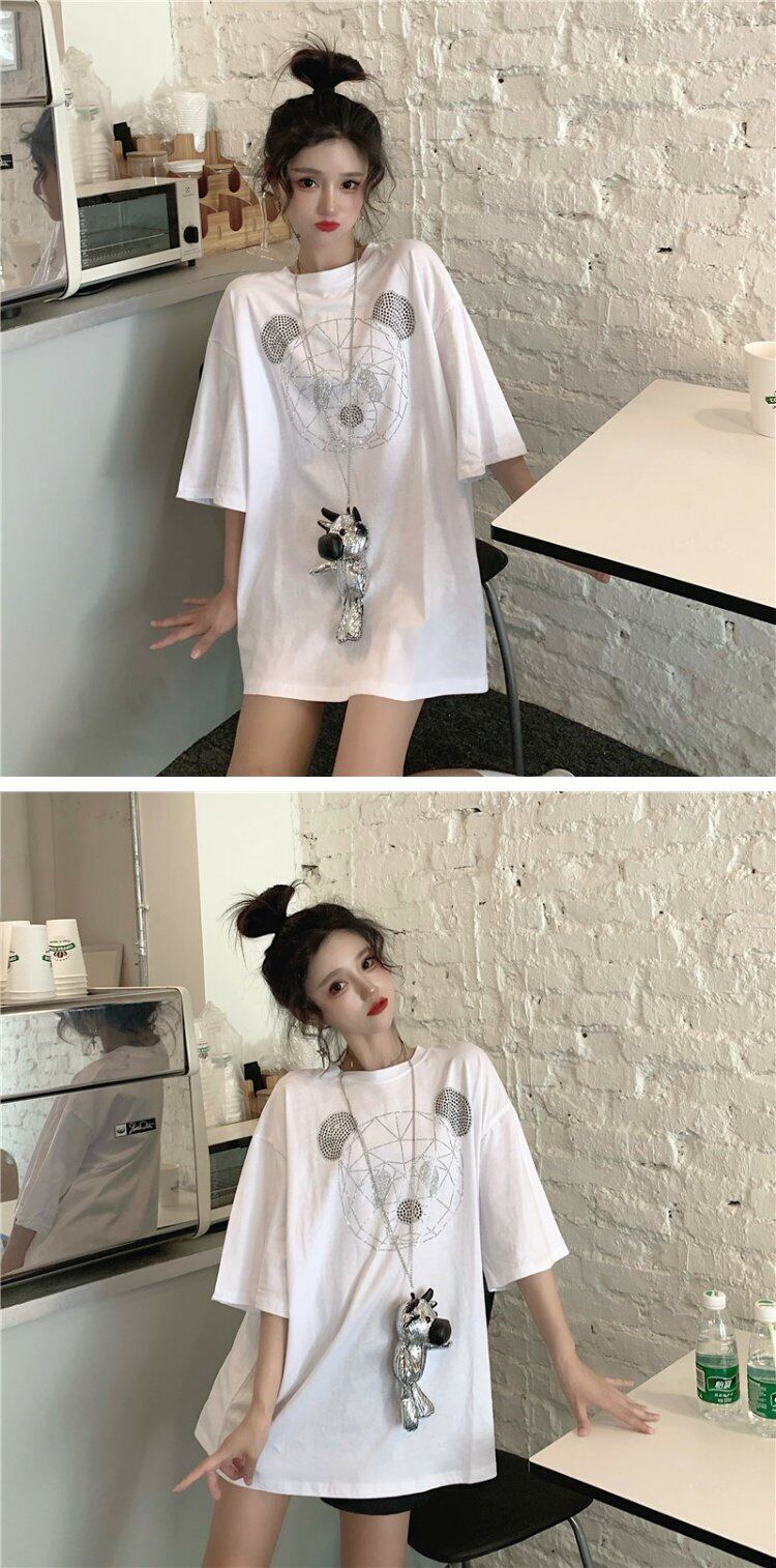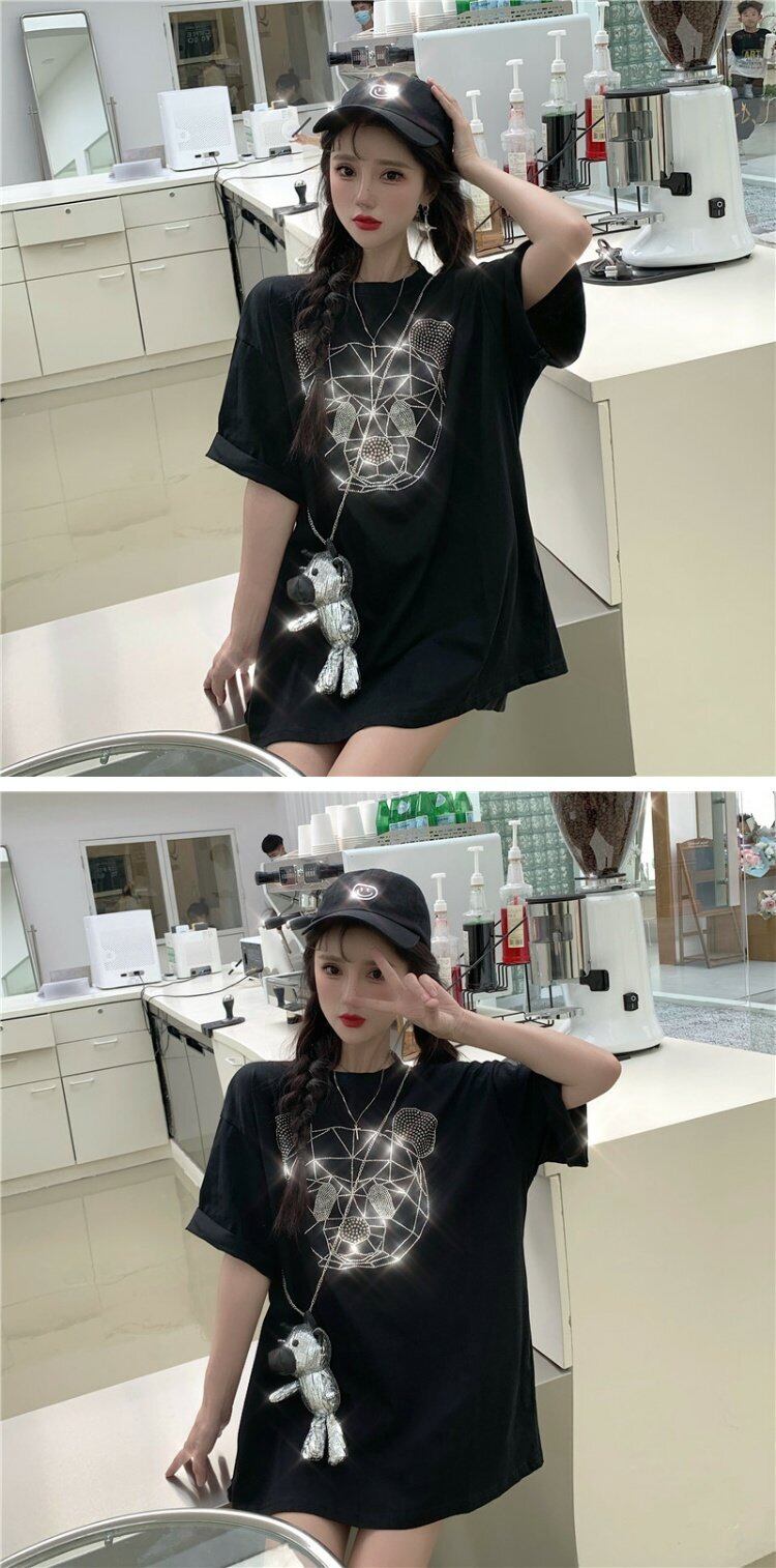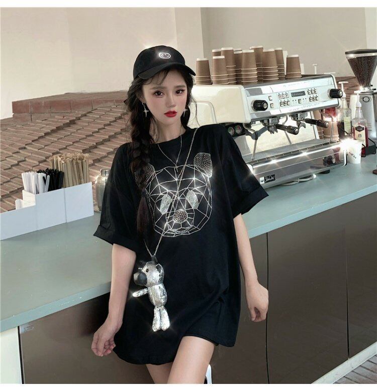Tシャツ夏服ブラックトップス 夏物 ヨーロピアン ミドル丈 コーデ marchs6729026684097