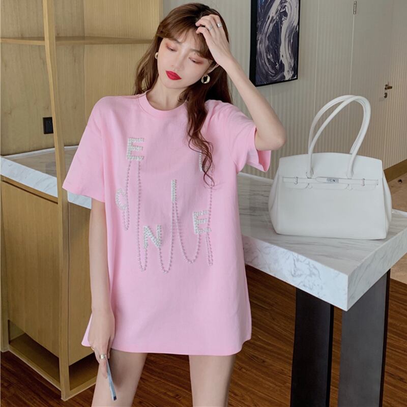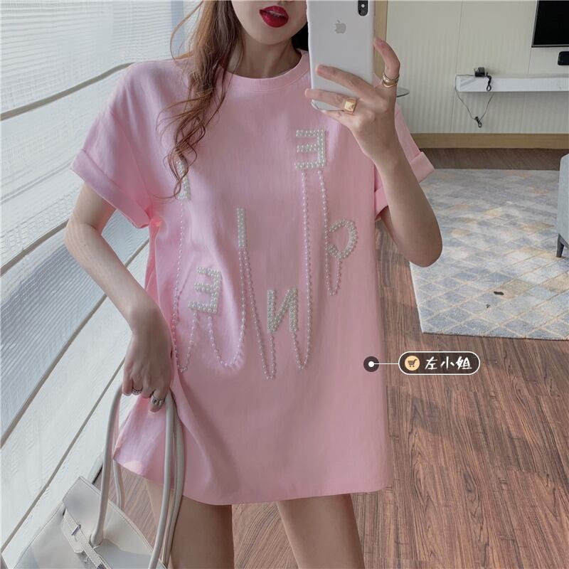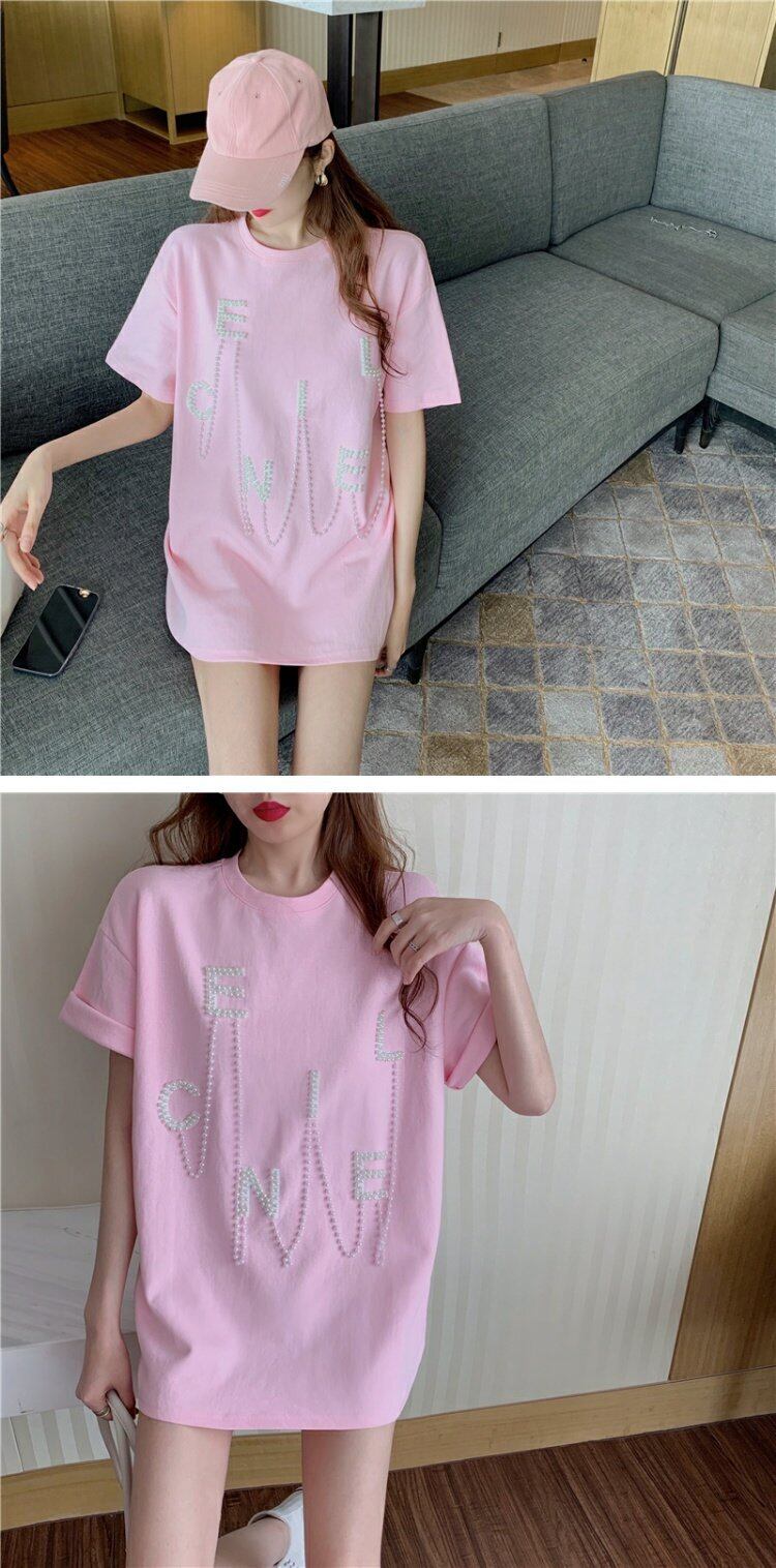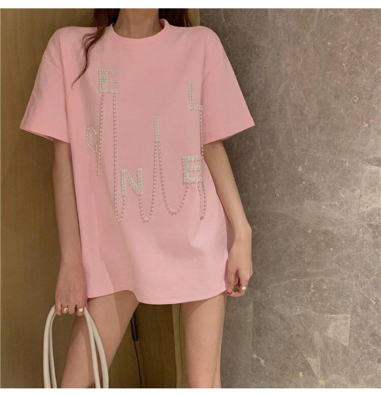 Tシャツシャツ 韓国ファッショントレンドルーズゆったり夏服トップス ピンク 夏物 スタイル ミドル丈 コーデ marchs6728192289143
