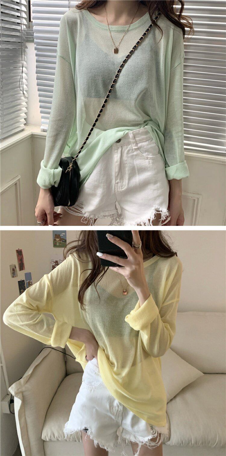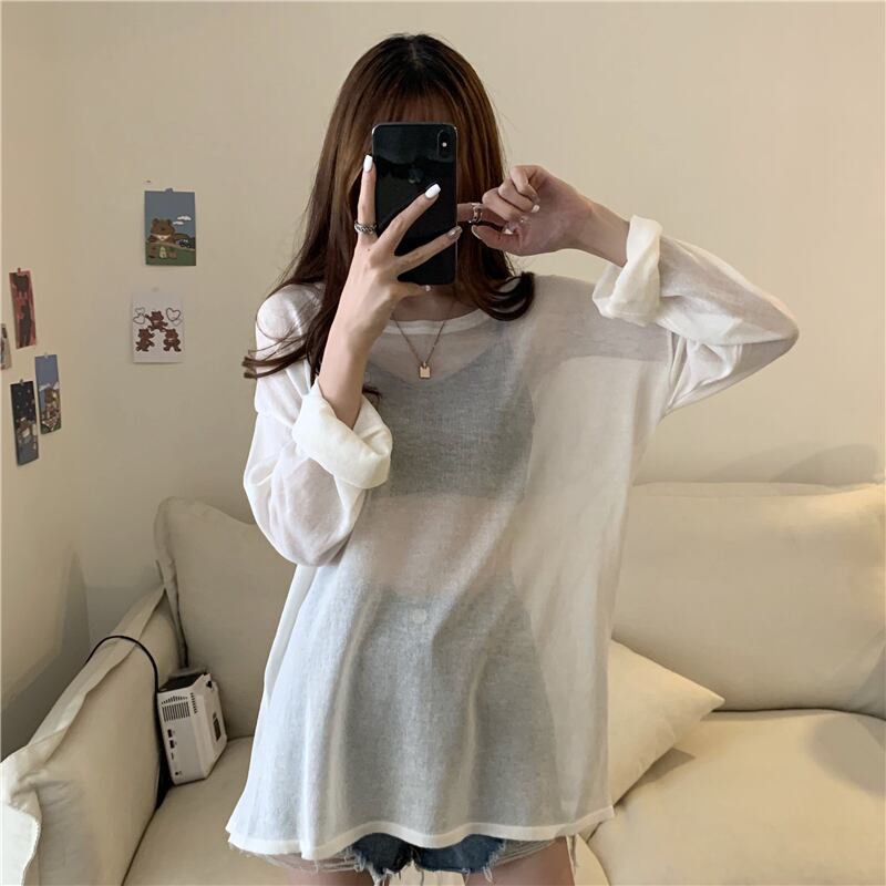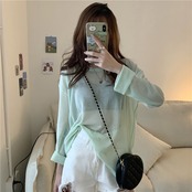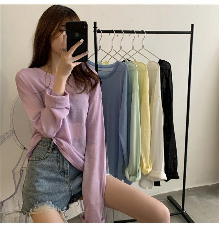 スプリング韓国ファッション薄手シャツ ルーズプルオーバー セーター レディース ロング 春物 スタイル 長袖 コーデ marchs6773508962347