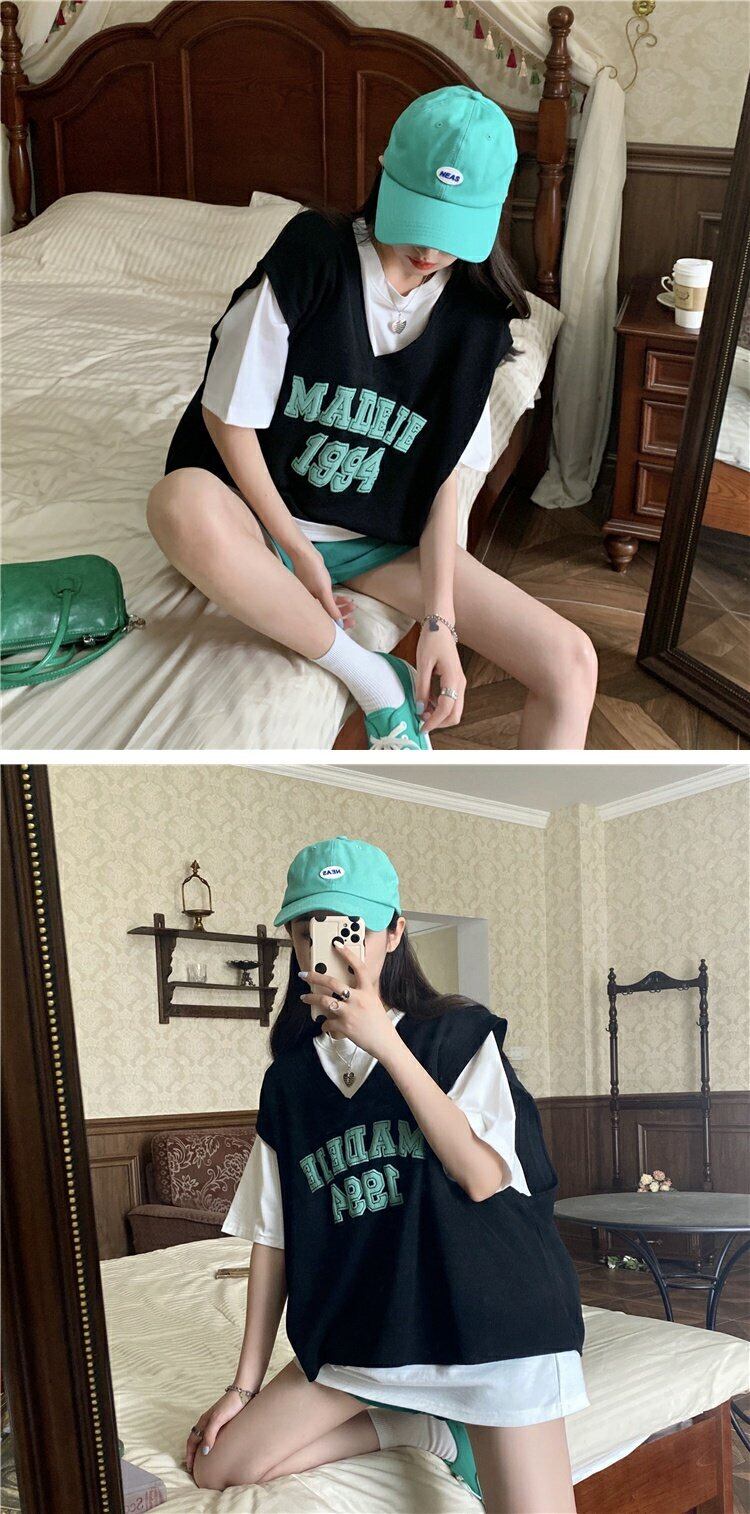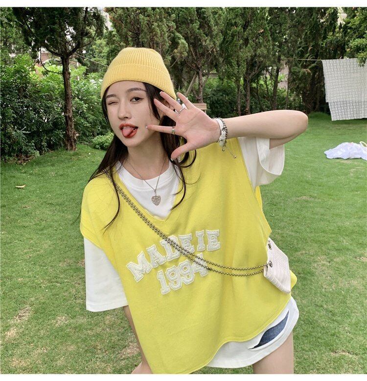 ニット夏服スタイル薄手Vネック レッド 夏物 シルク ウエスト コーデ marchs6770001399877
