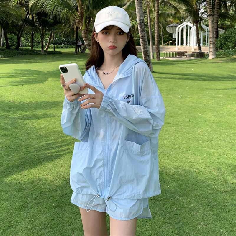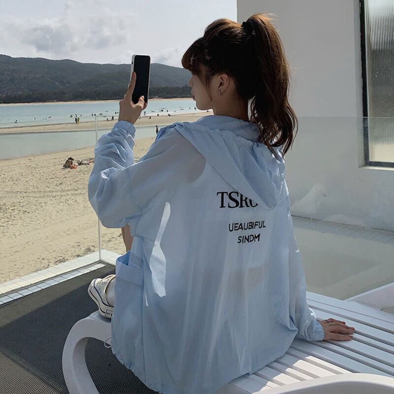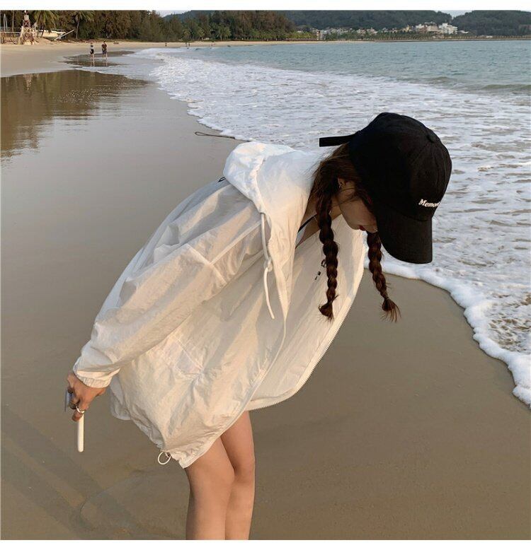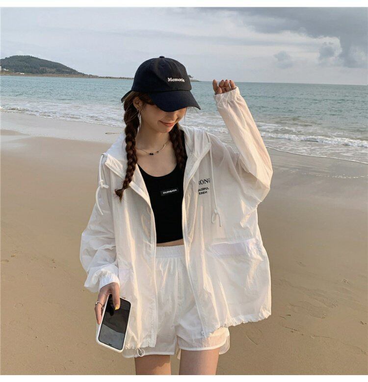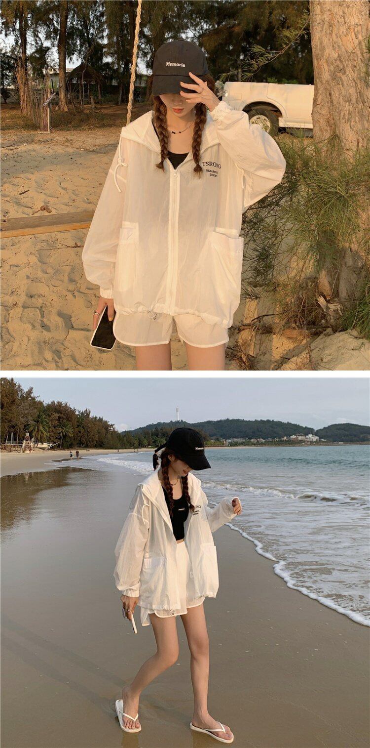 スプリングトップス レディース夏服薄手韓国ファッションルーズフードホワイトジャケット 春物 夏物 コーデ marchs6710928944828