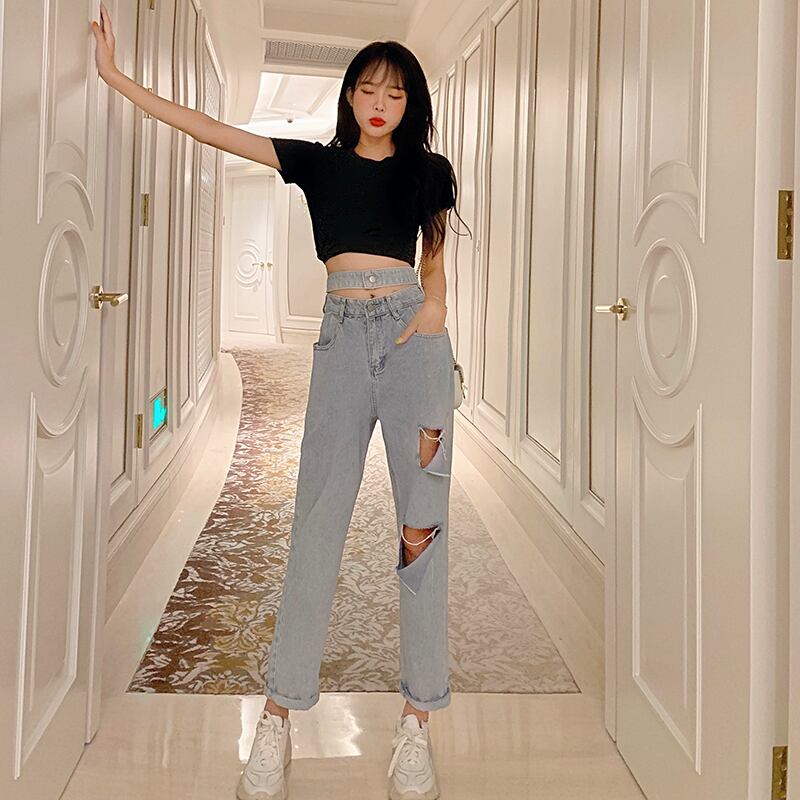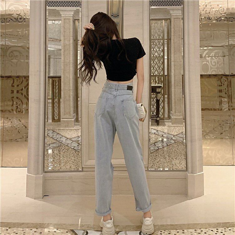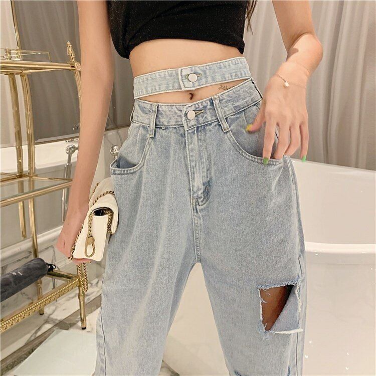 スプリングルーズハイウェストウェストジーンズ レディースパンツ トレンド 春物 ウエスト コーデ marchs6762572669019