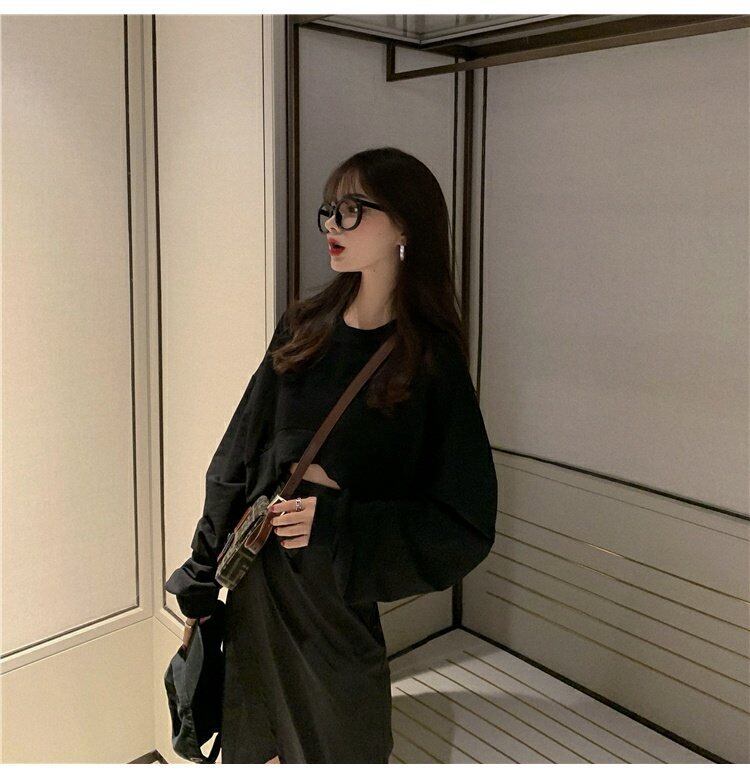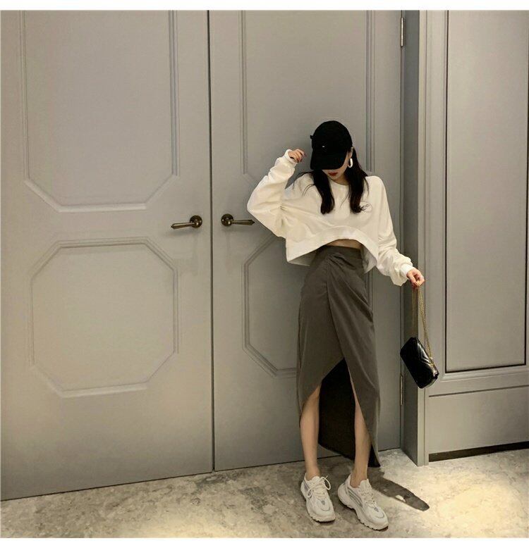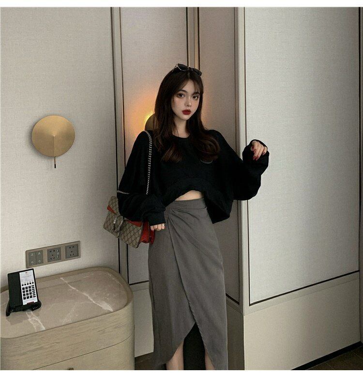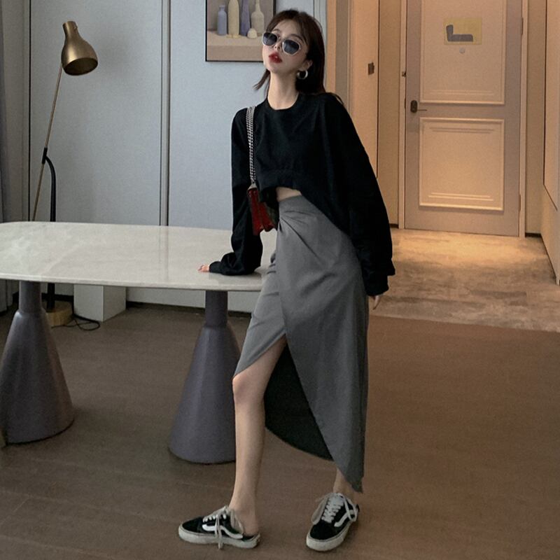 スプリング韓国ファッションハイウェスト薄手スカート ブラックAラインレディース 春物 スタイル ウエスト ミドル丈 コーデ marchs6730049469043