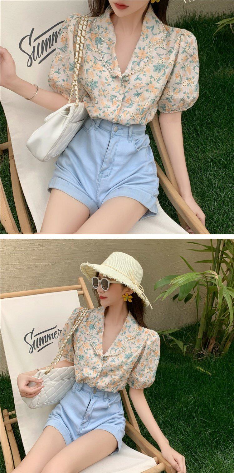 スタイルスタンダードスリーブカラーシャツ レディース夏服ジャケット レトロ 大人ガーリー スウィート キュート カジュアル 夏物 コーデ marchs6785335803470