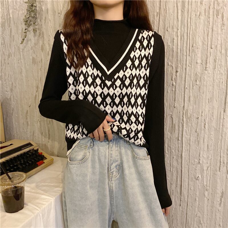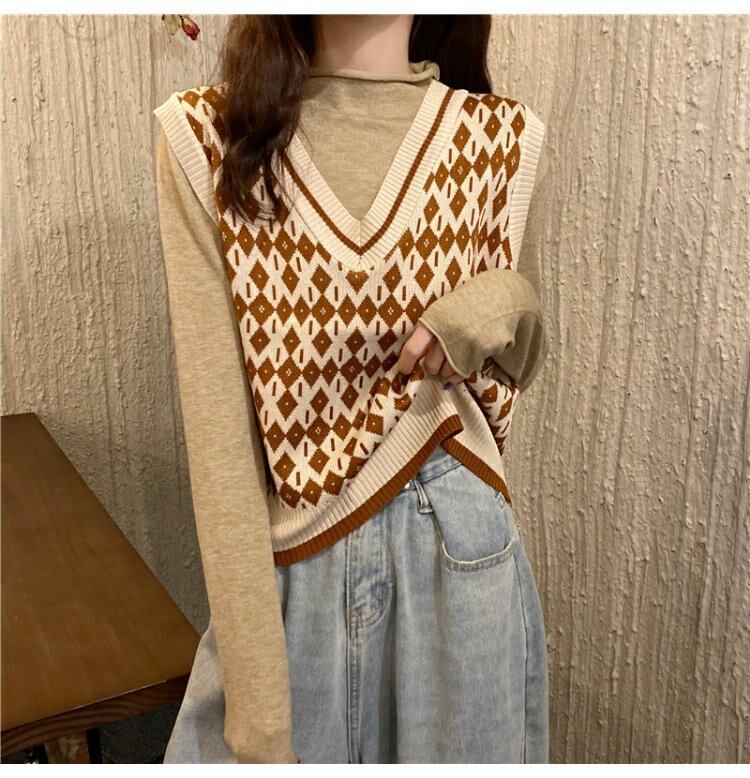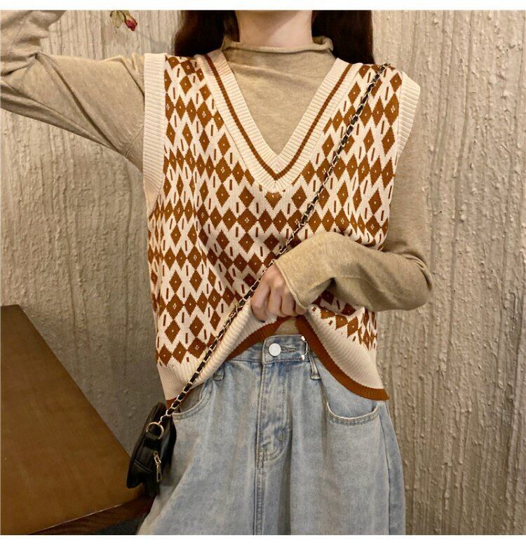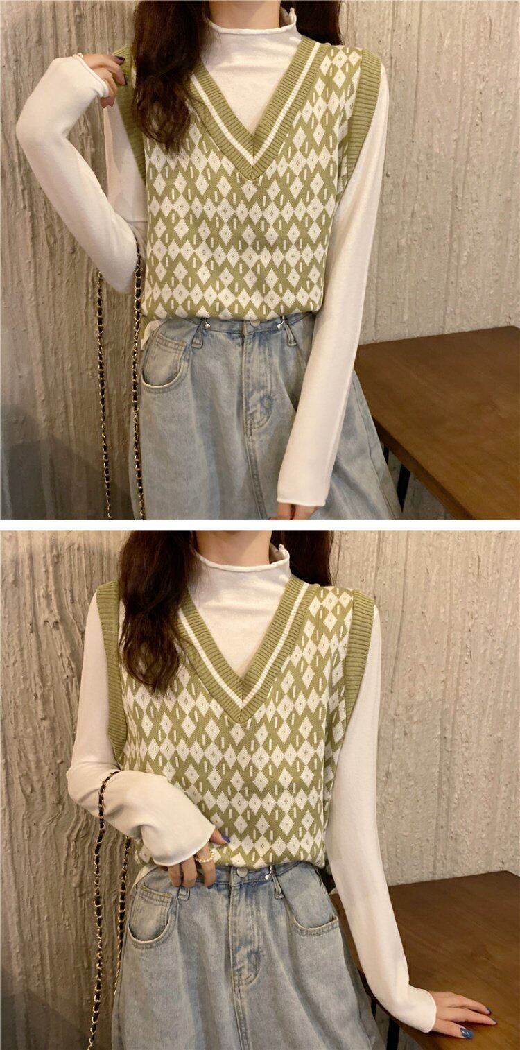 スプリングスタイルルーズVネックニットセーター 春物 コーデ marchs6777911591712