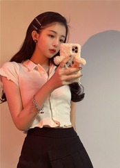 夏服韓国ファッションカラークロップドトップス ニットTシャツ 夏物 スタイル コーデ marchs6751127748471