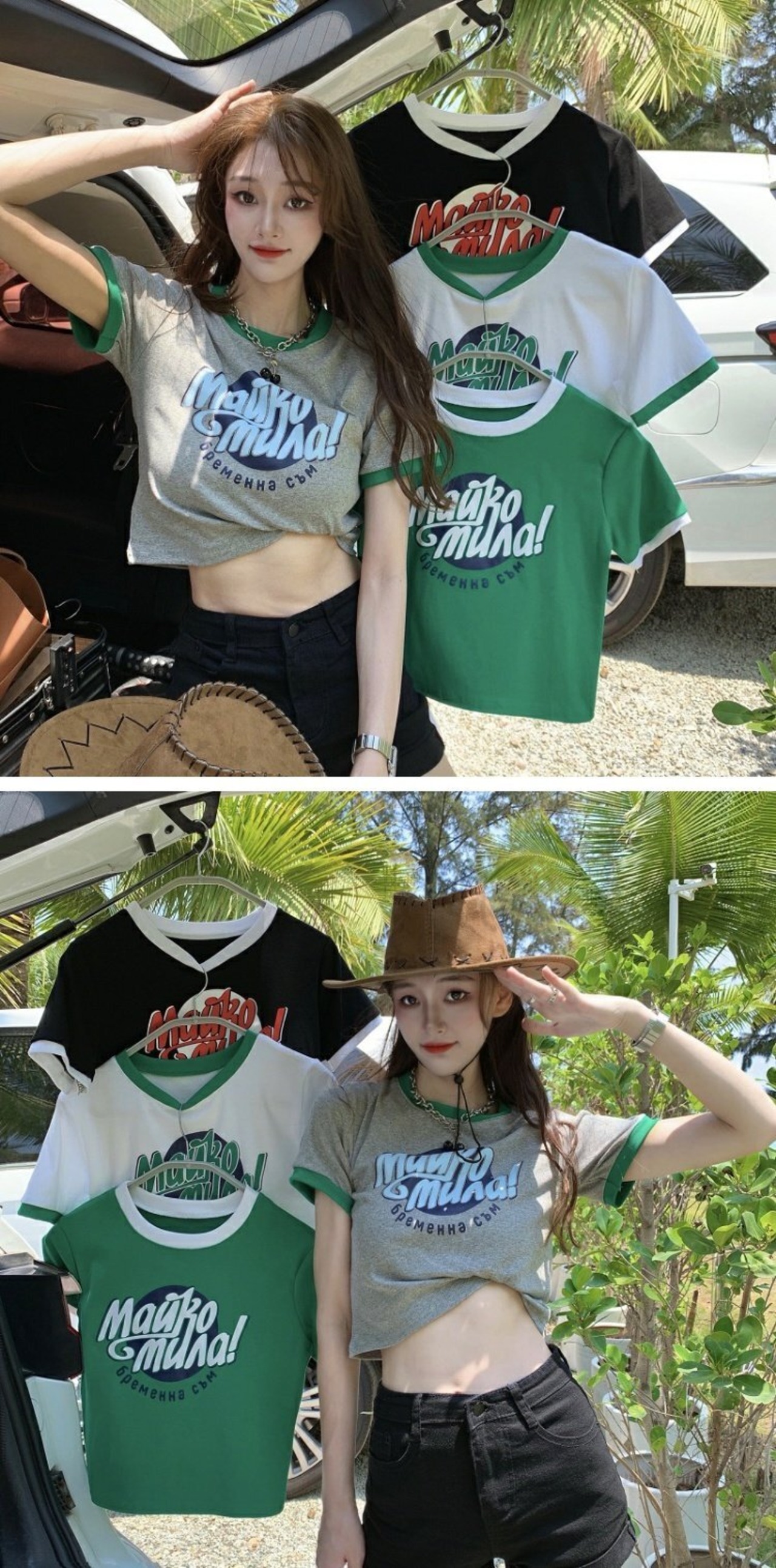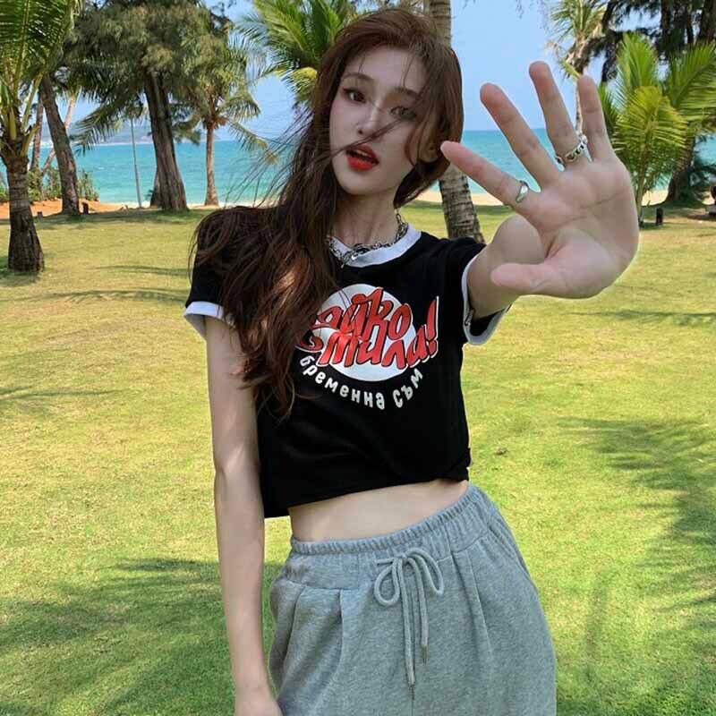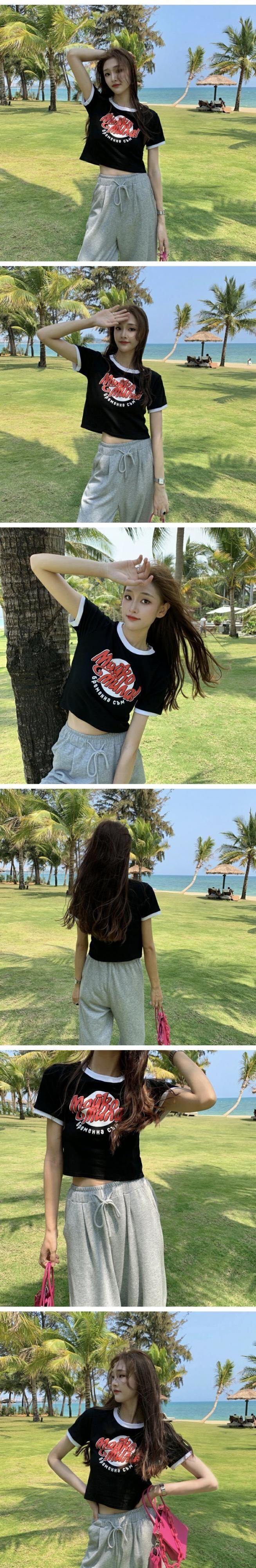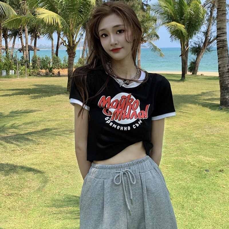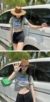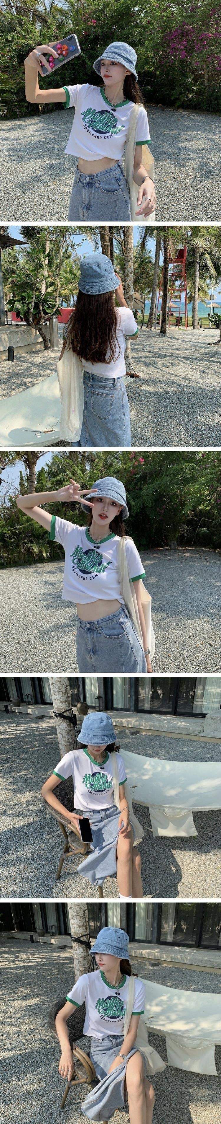 カラーハイウェストウェストショートトップス 夏服プリントグリーンTシャツレディース 大人ガーリー スウィート キュート カジュアル 夏物 ウエスト コーデ marchs679240211326