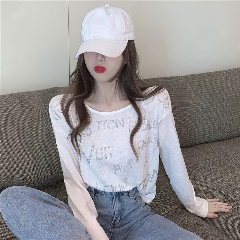 ラウンドネックルーズTシャツスプリング韓国ファッション薄手トップス ロング 春物 Oネック 長袖 コーデ marchs679957115737