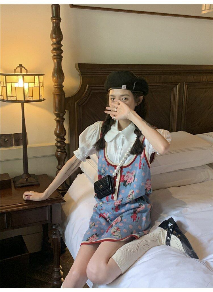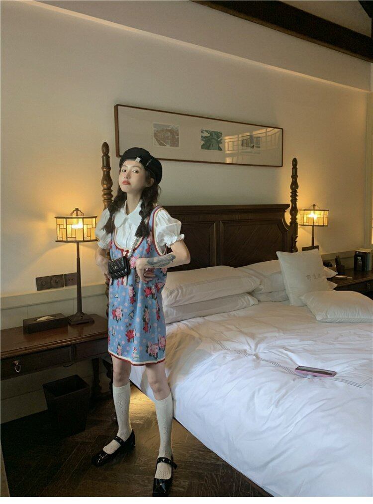夏服スタンダードフローラルスカート ショートワンピースレディース レトロ 大人ガーリー スウィート キュート カジュアル 夏物 花柄 コーデ marchs6750213119432
