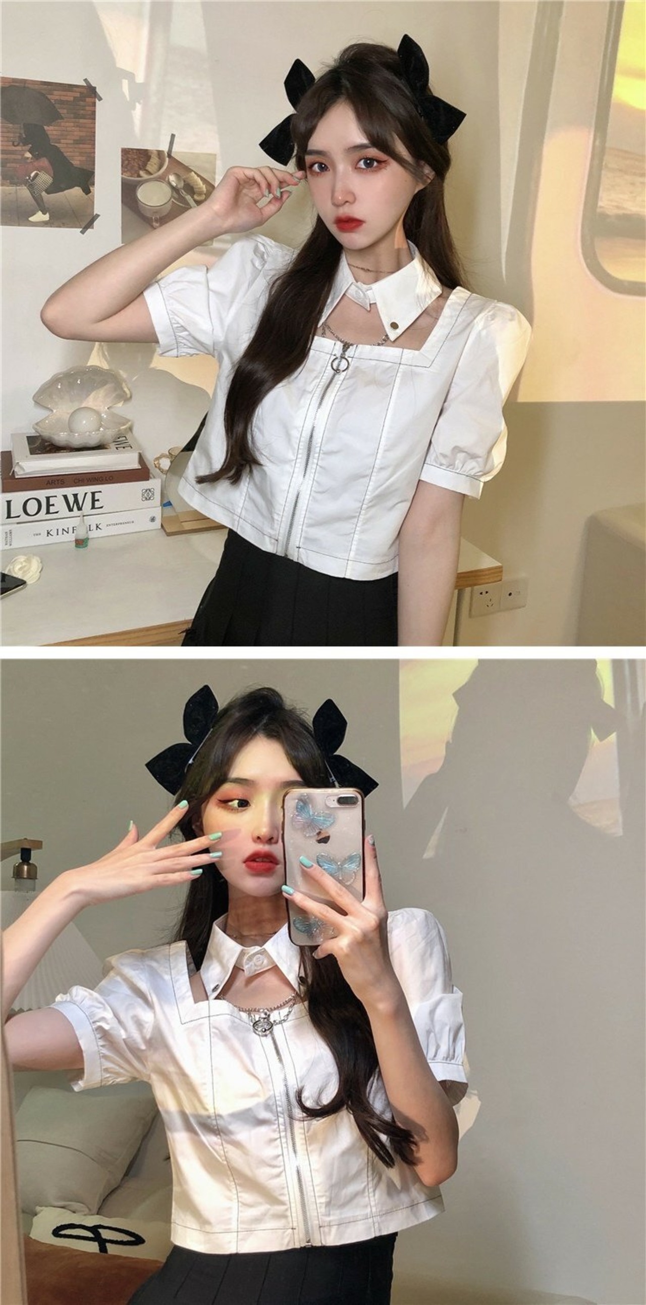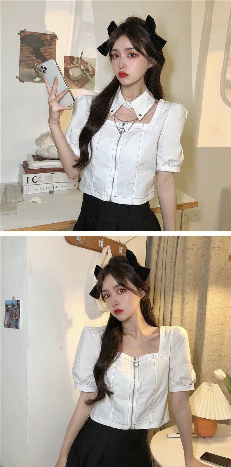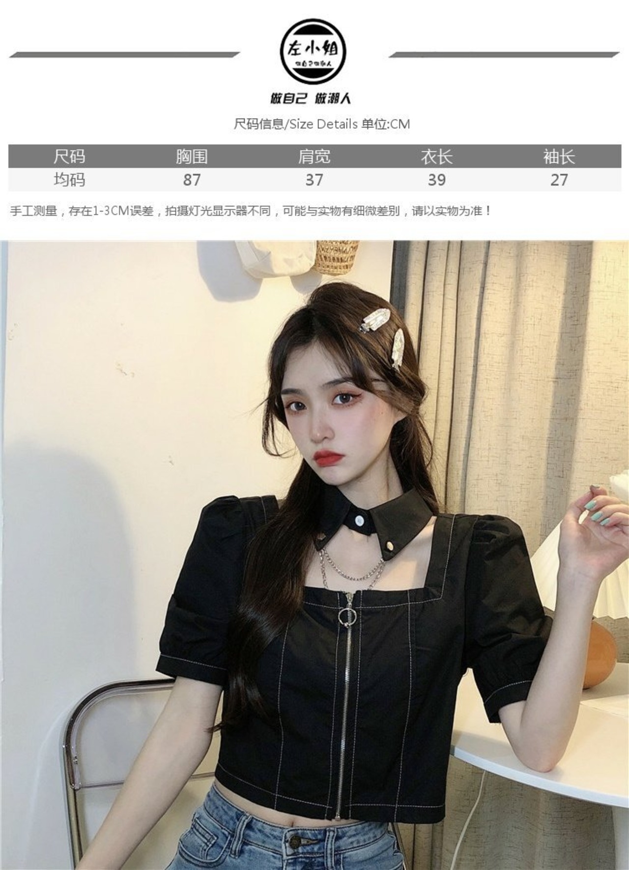ブラウス レディース夏服スタイルクロップドショートハイウェストウェストブラックシャツ 大人ガーリー スウィート キュート カジュアル 夏物 スクウェア ウエスト コーデ marchs6745235796081