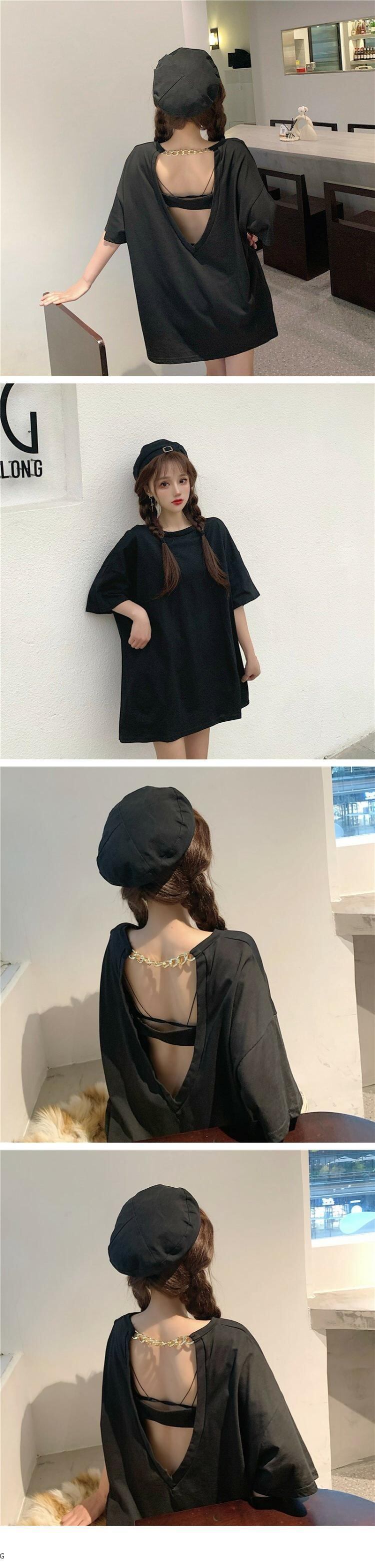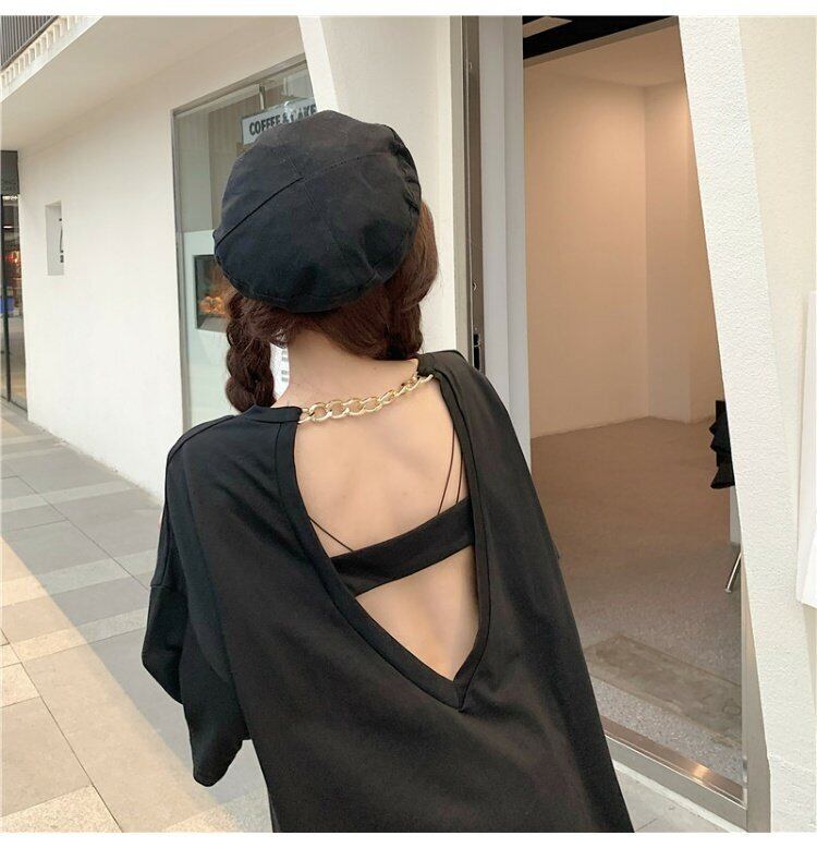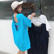 ホルタートップス 夏服ルーズTシャツトレンド 夏物 ミドル丈 コーデ marchs6773998745002