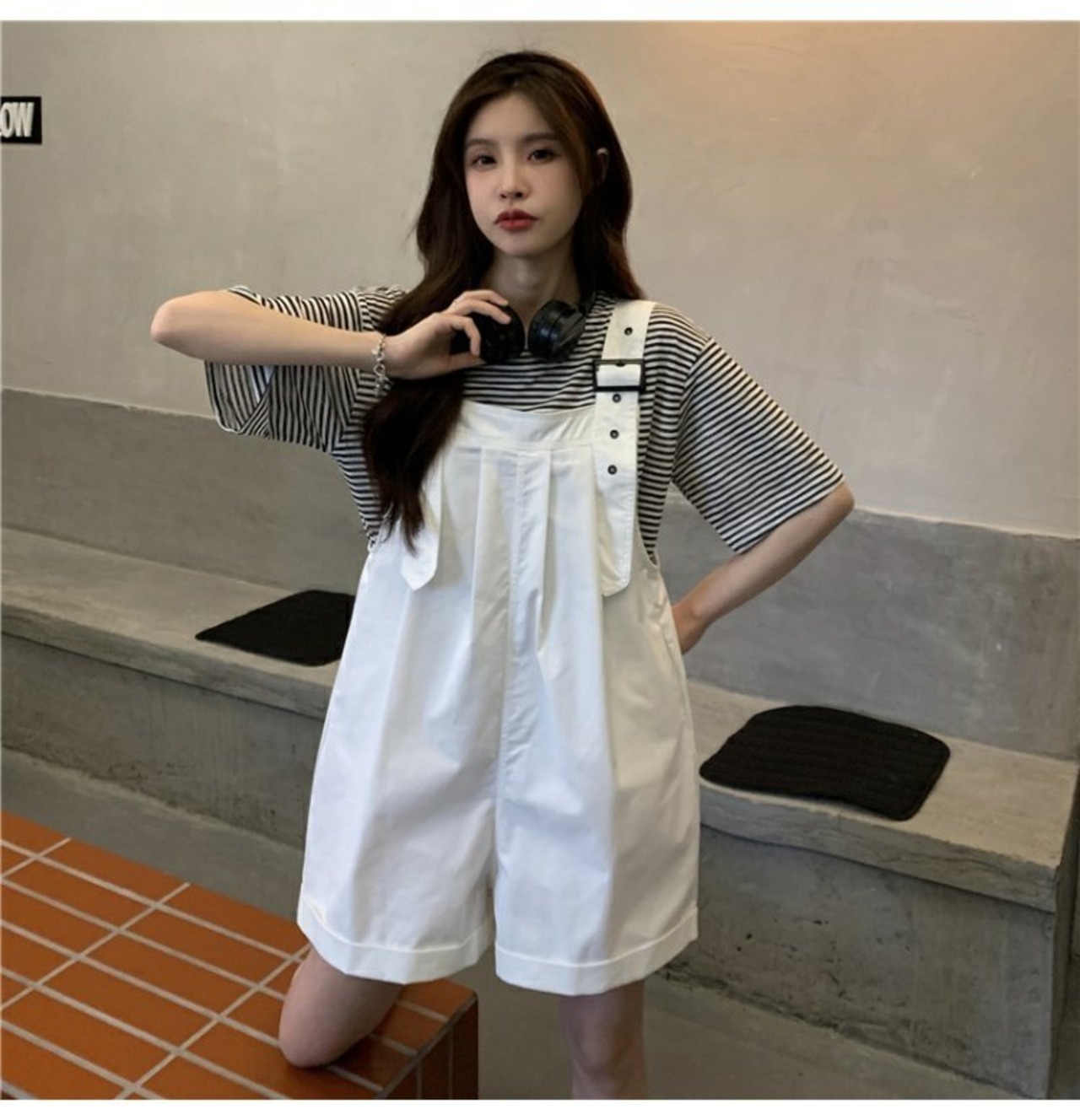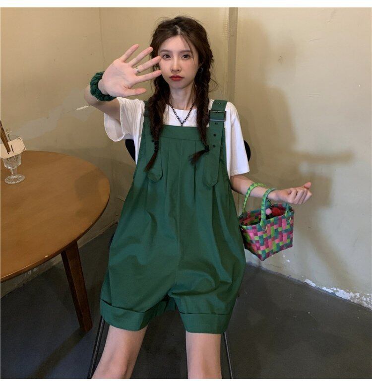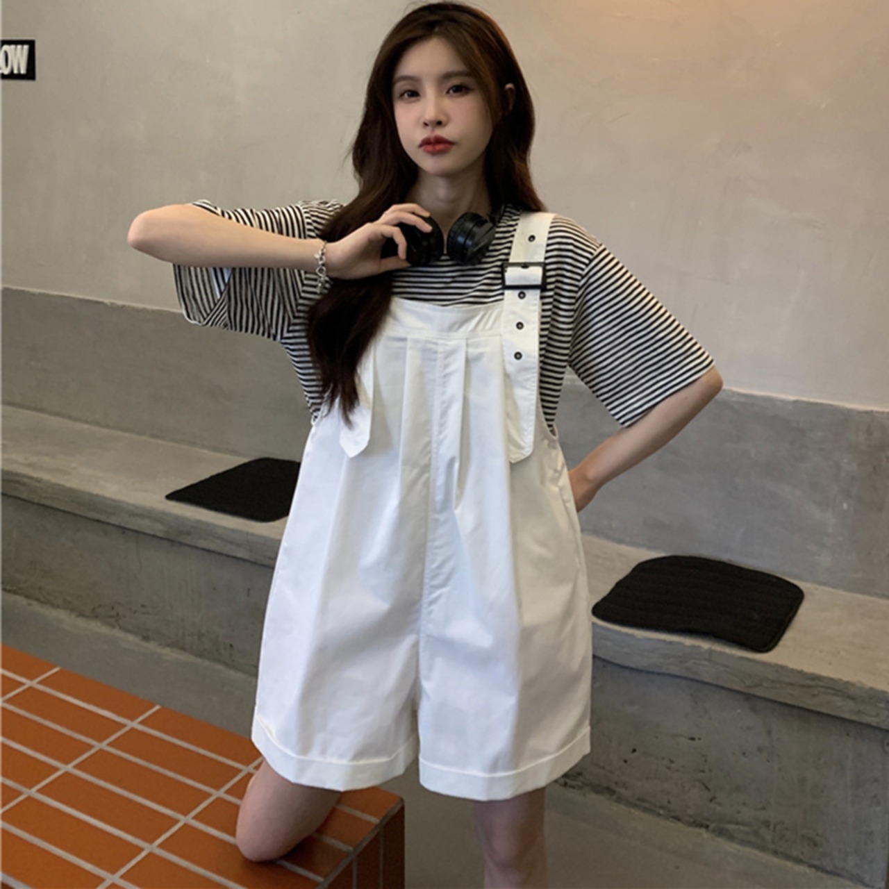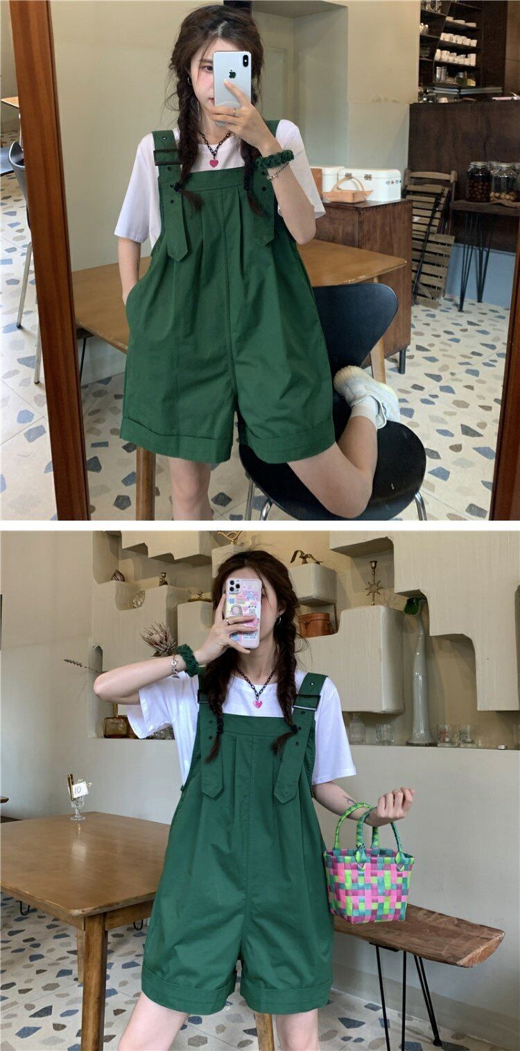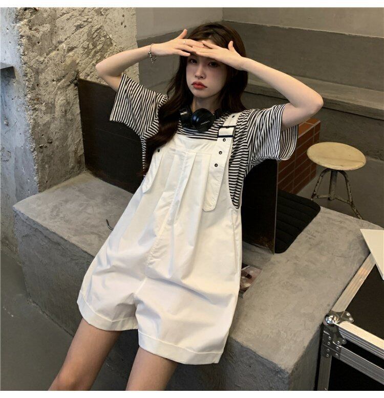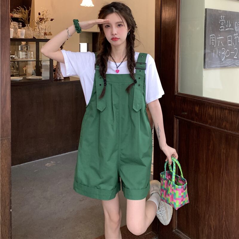 色:白いTシャツ,ストライプTシャツ,緑のオーバーオール,白いよだれかけ