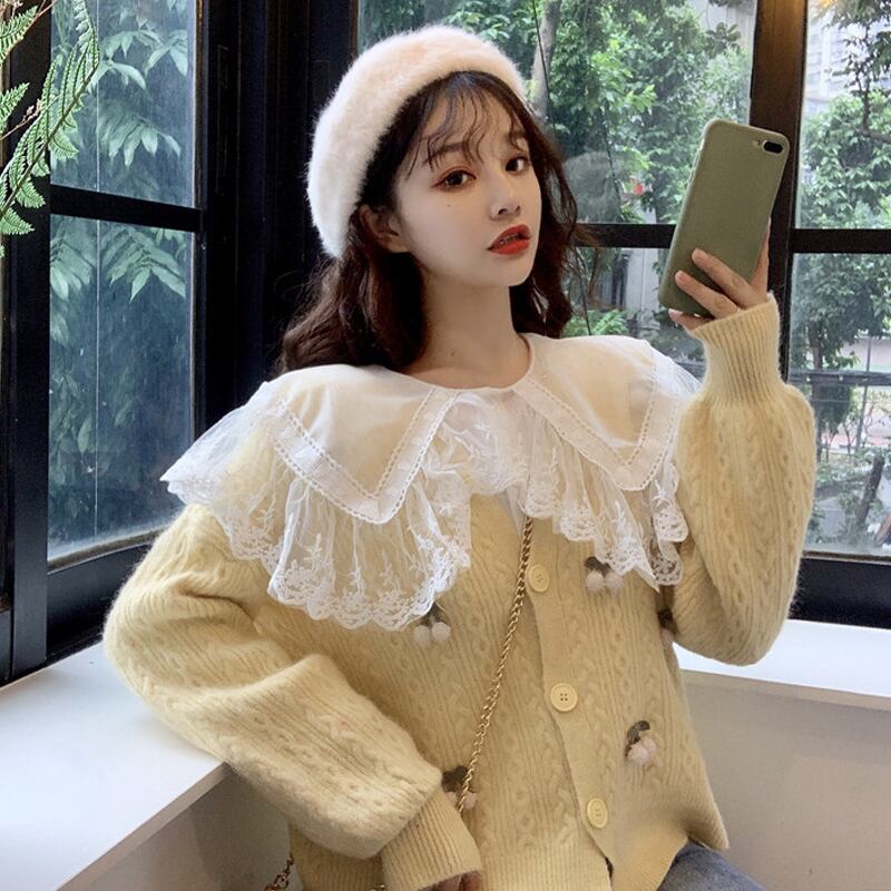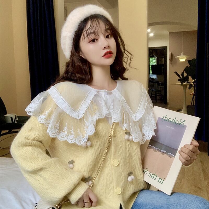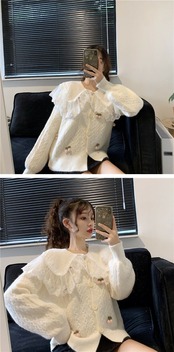 色:ホワイトカーディガンセーター,黄色のカーディガンセーター,ドールカラーシャツ
